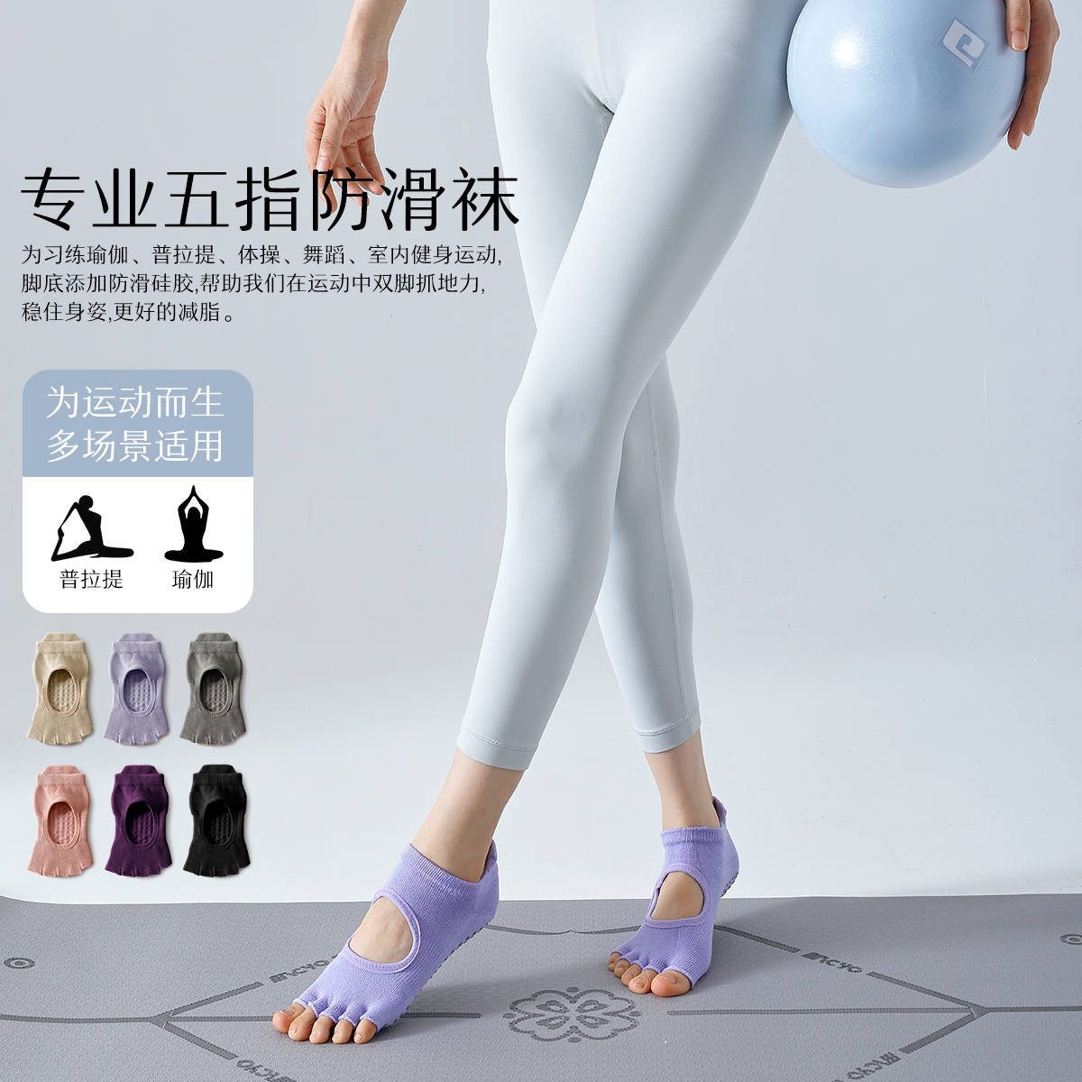 五指瑜伽袜子女露趾夏季 室内运动舞蹈硅胶防滑短袜跑步普拉提 薄款