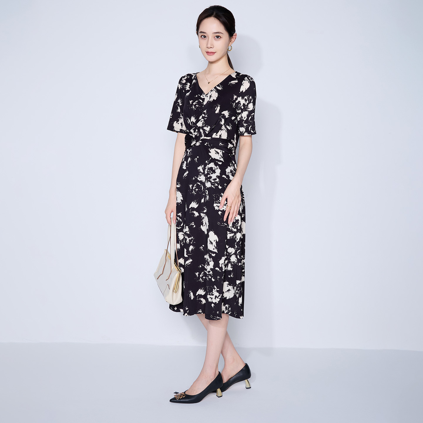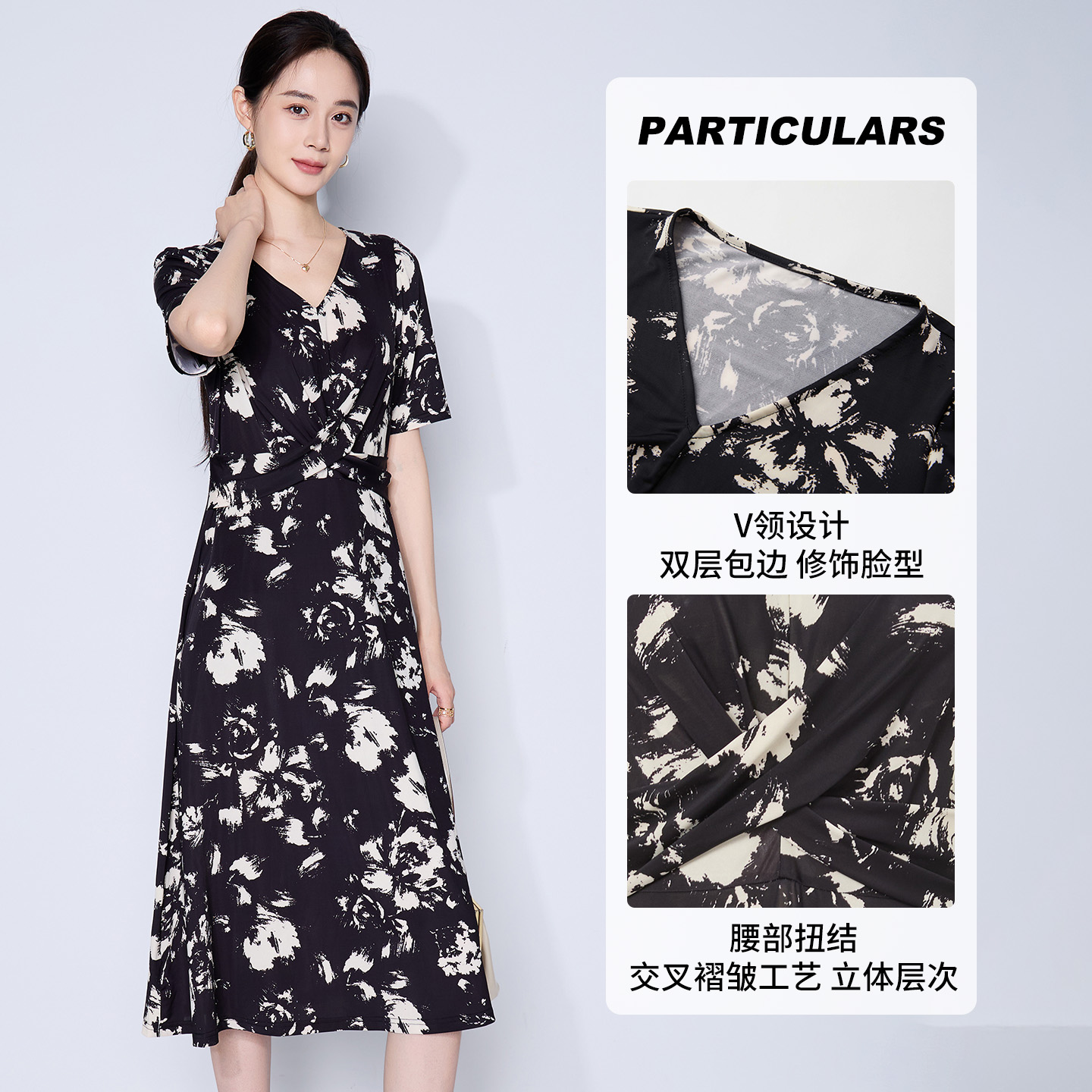 翻领连衣裙女24春秋气质长裙BDR3LD3250 播商场同款 新中式