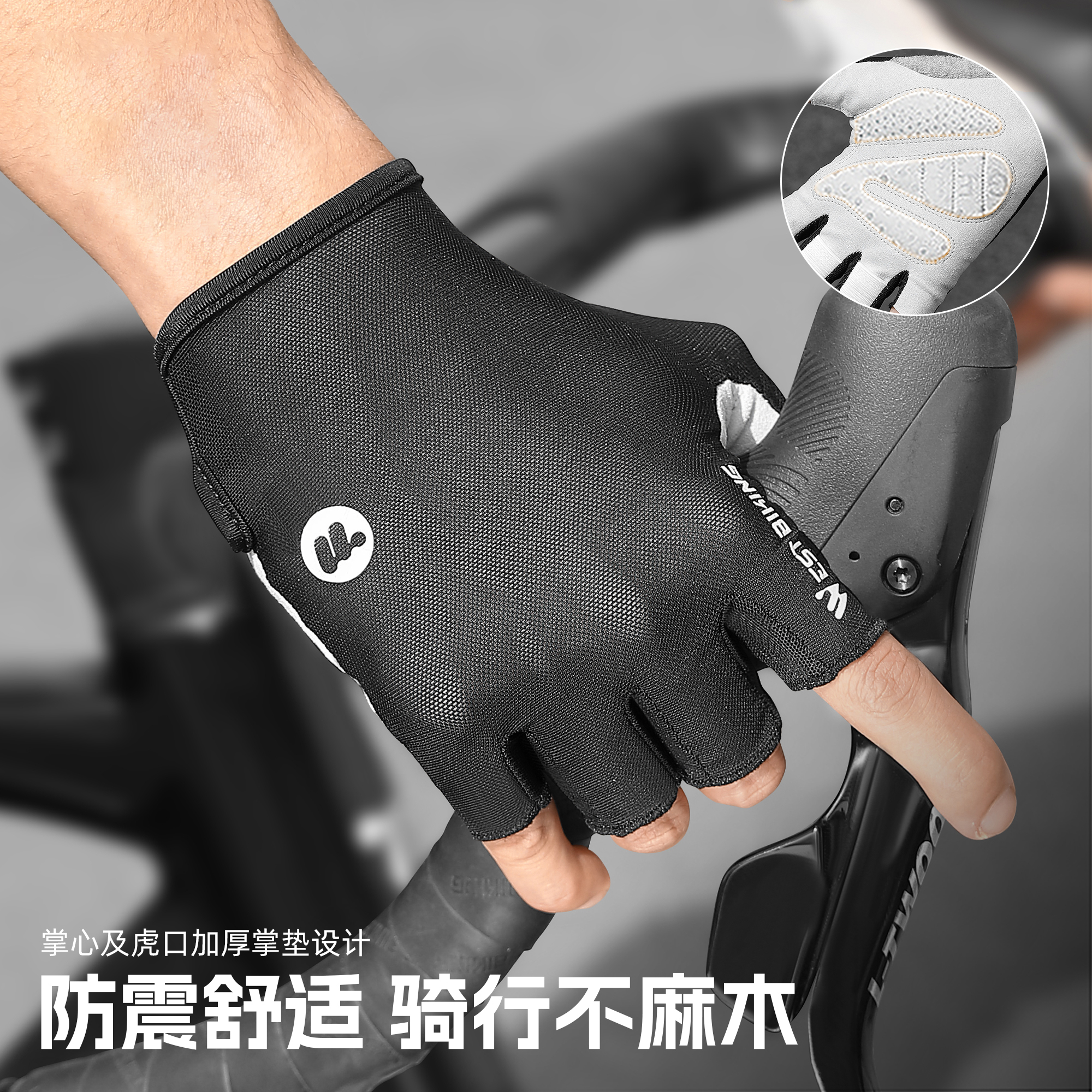 骑行手套男半指运动健身女夏季 户外动感单车防滑露指减震透气 薄款