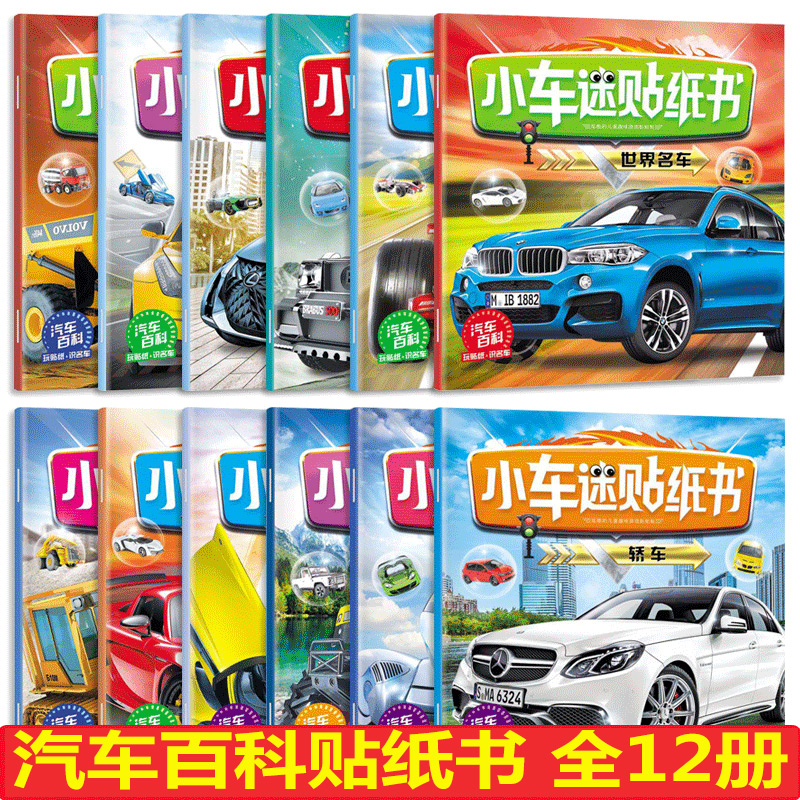 6册小车迷贴纸书情景认知绘本汽车贴贴画幼儿童图画儿童汽车书籍