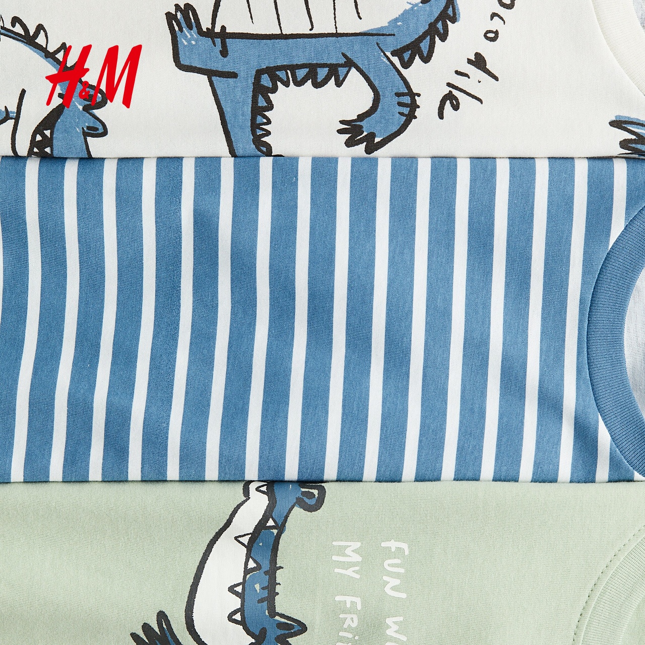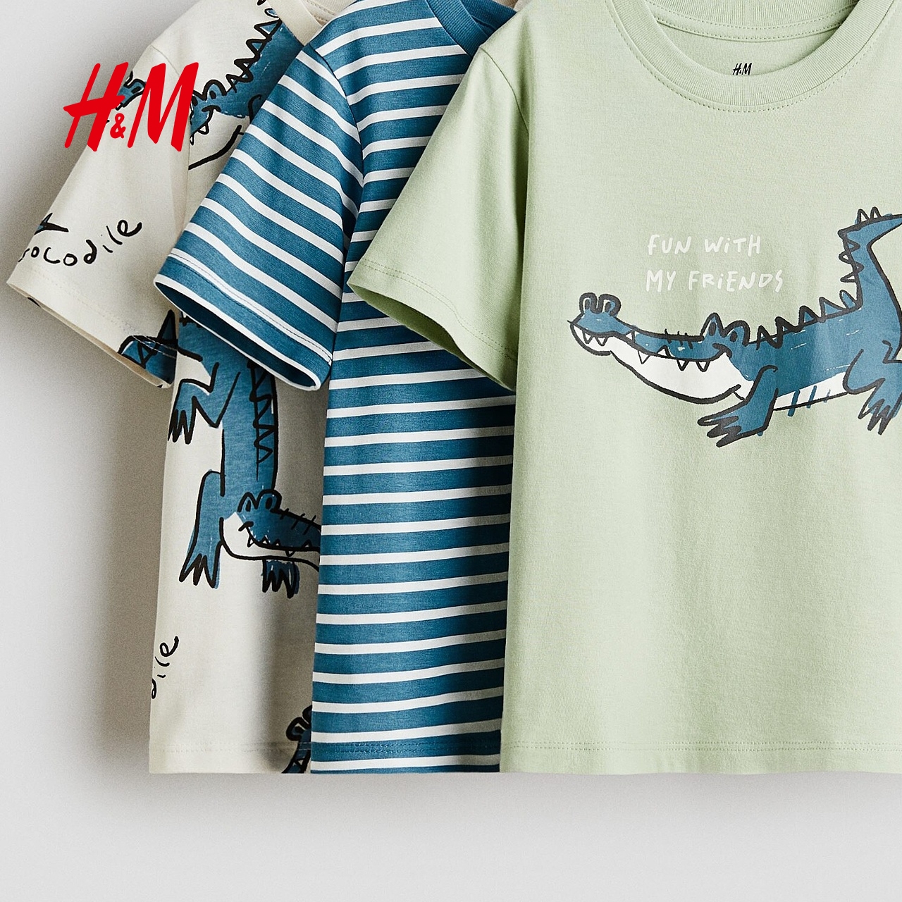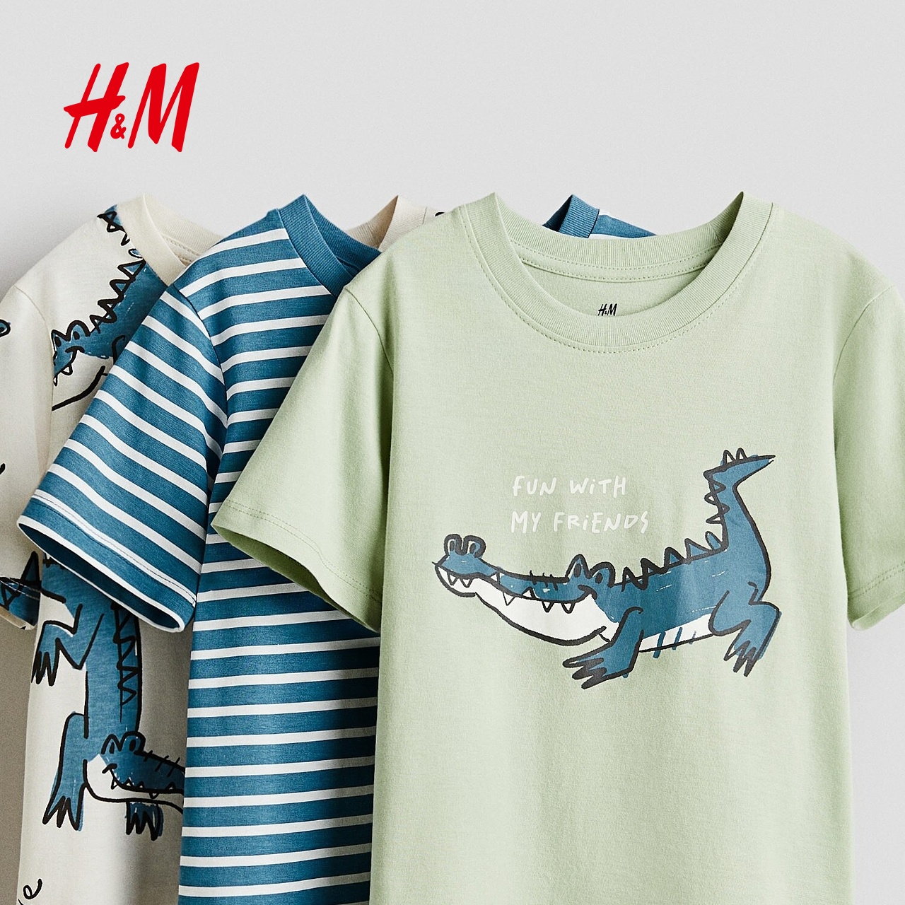洋气印花宽松短袖 2025秋新新款 1250870 儿童男童T恤3件装 HM童装