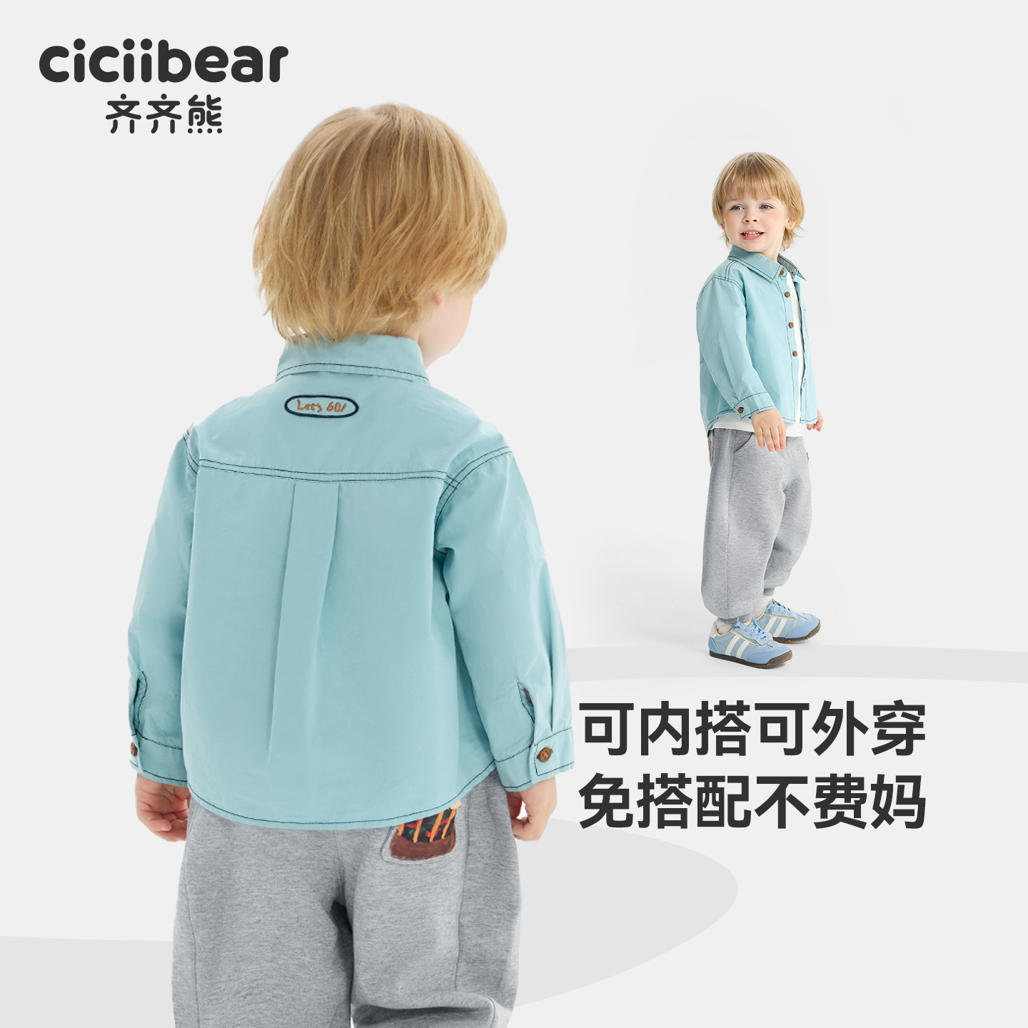 儿童柔软吸湿透气亲肤 2025新款 齐齐熊宝宝衬衫 外套男童上衣春秋款