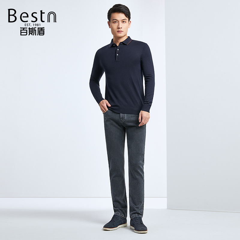 不易褪色 男长裤 GXG男装 通勤弯刀裤 2025春秋季 深蓝阔牛仔裤