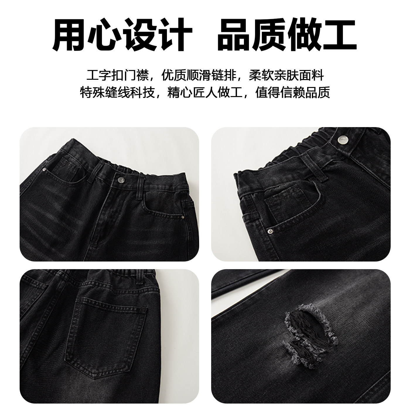 定制裤 男秋季 长 黑灰色做旧破洞阔腿牛仔裤 宽松百搭潮 25年新款