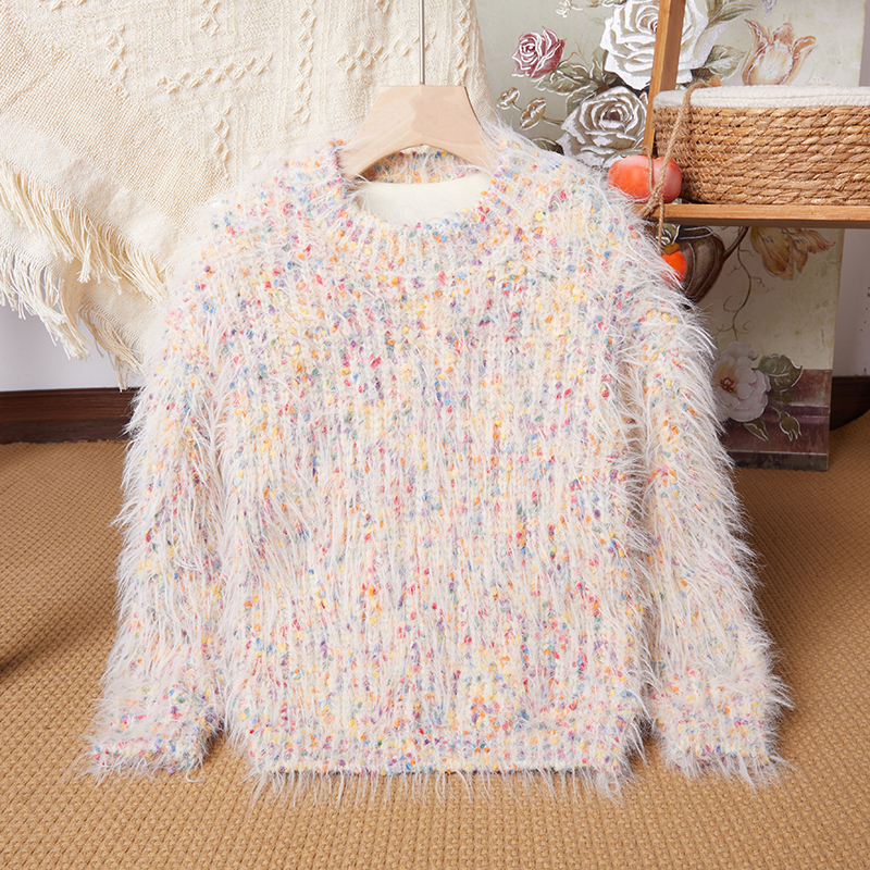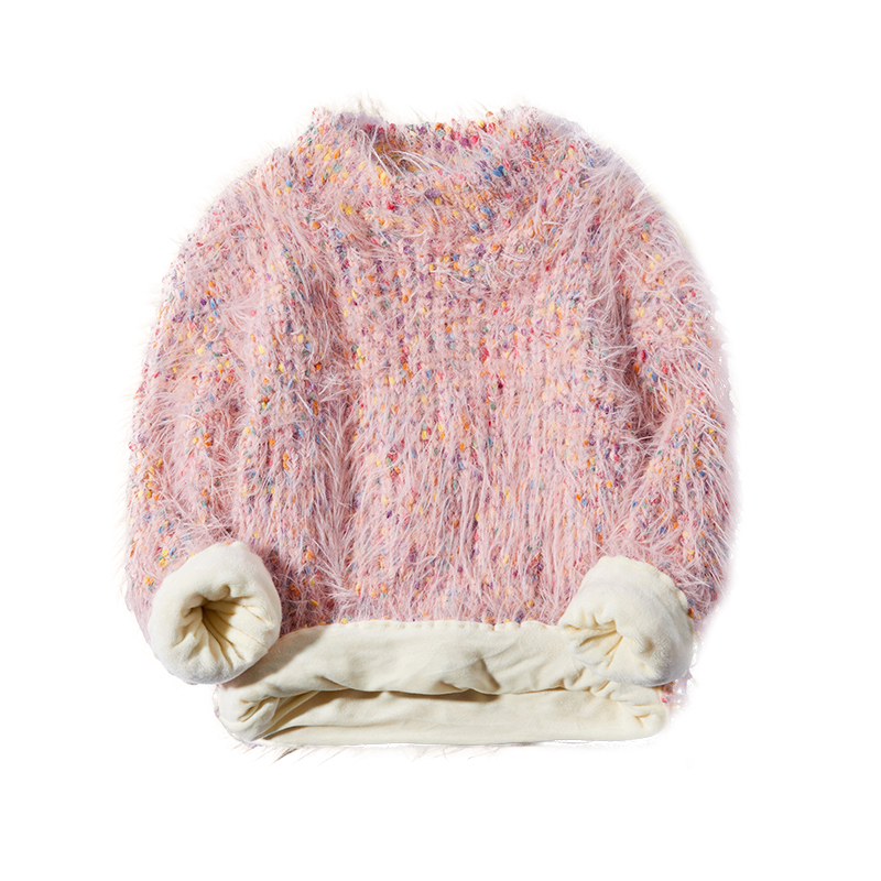 女童水貂绒毛衣秋冬新洋气女孩加绒加厚针织衫 上衣 保暖儿童打底衫