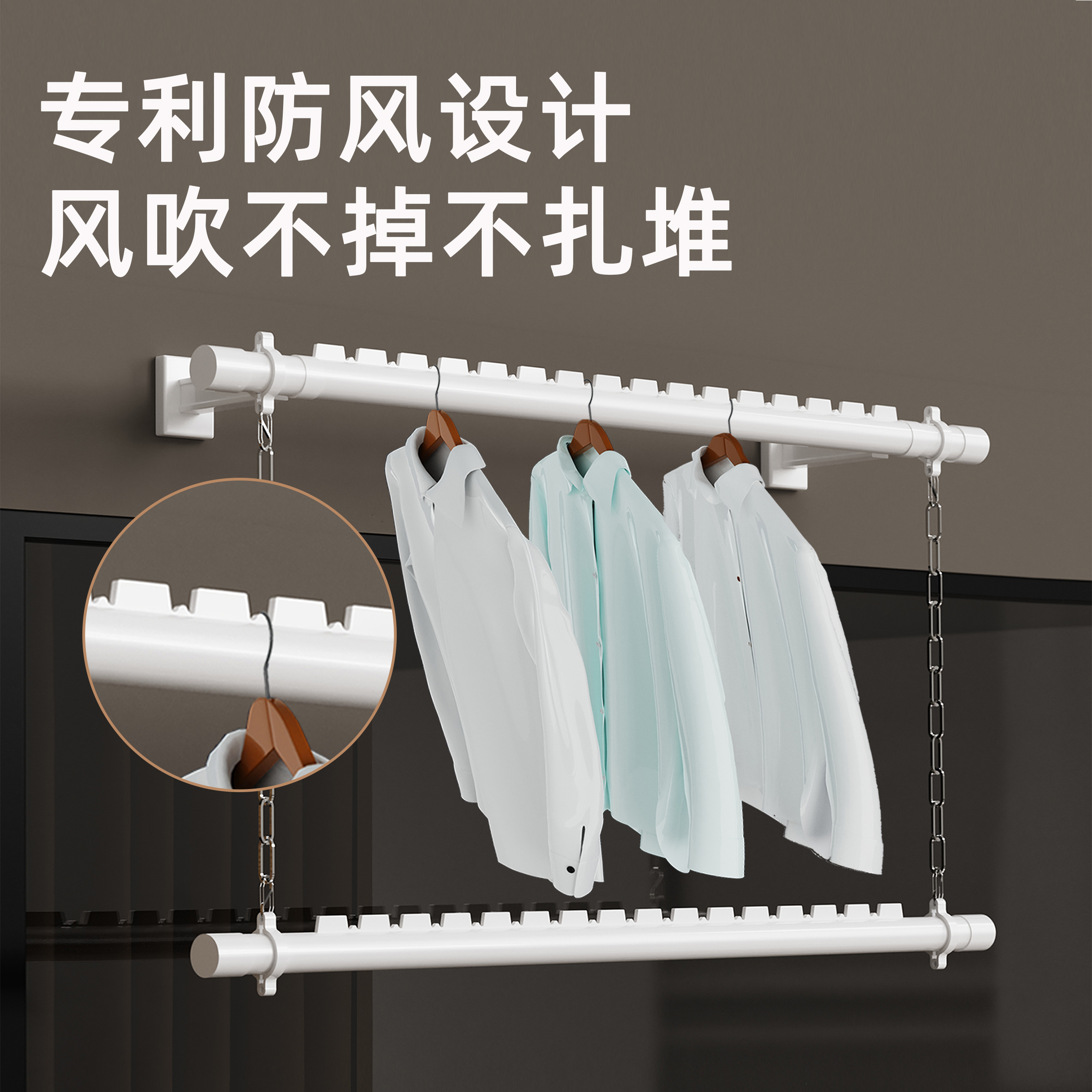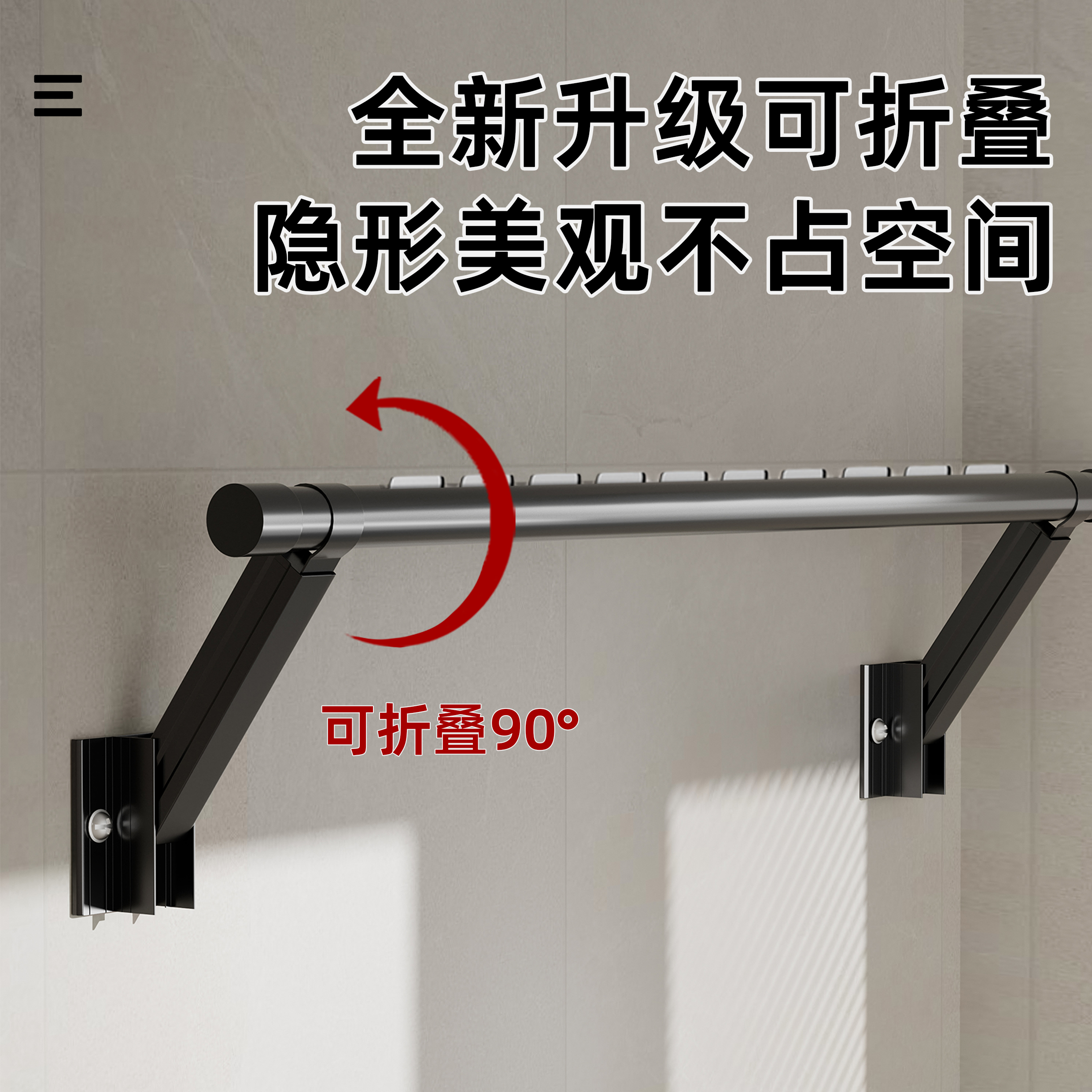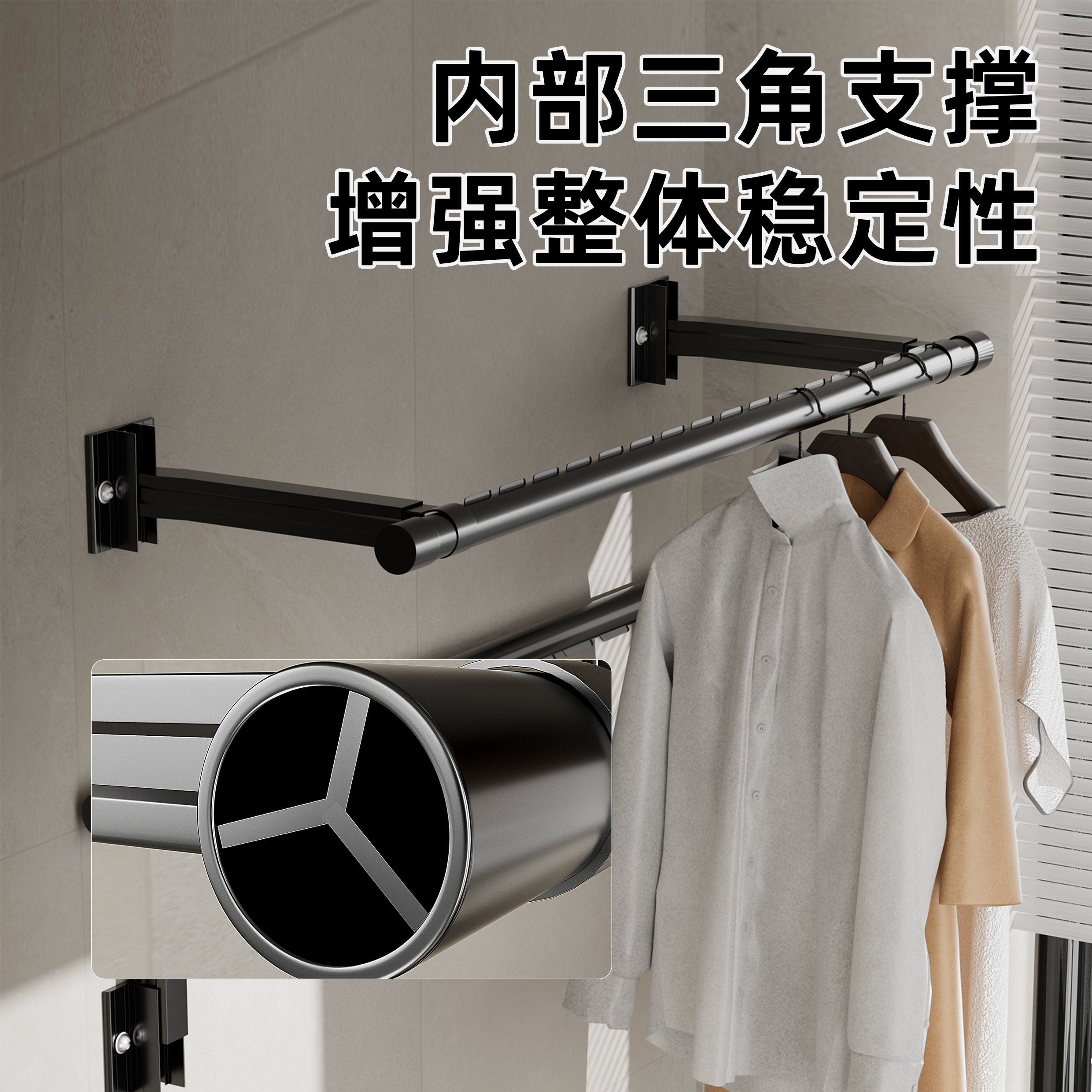 阳台横侧装 晾衣杆室内外一根挂衣杆 晾衣架墙上折叠家用三角固定式