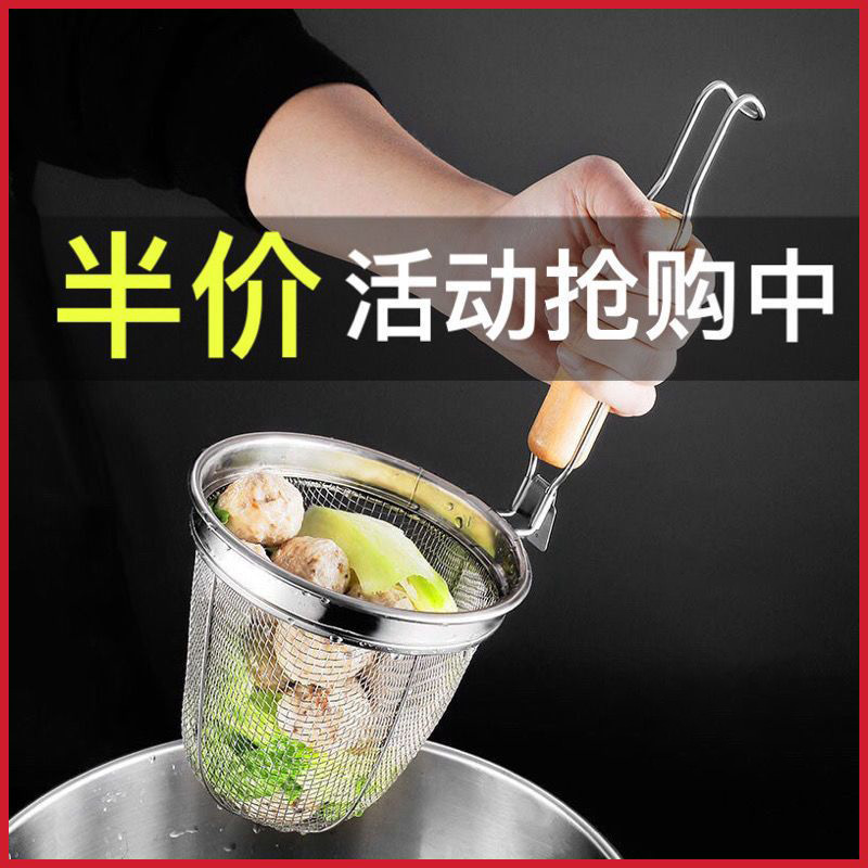 食品级不锈钢漏勺过滤网捞面勺煮面捞面烫菜篓漏网酒店油炸大漏勺