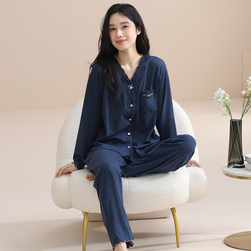 家居服女款 纯棉长袖 夏季 薄款 家乐芬睡衣女士春秋款 空调服套装 秋季