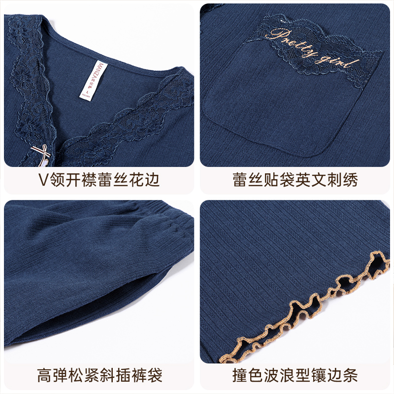 家居服套装 秋冬保暖空气棉夹层加厚女士春秋长袖 睡衣女款 2025新款