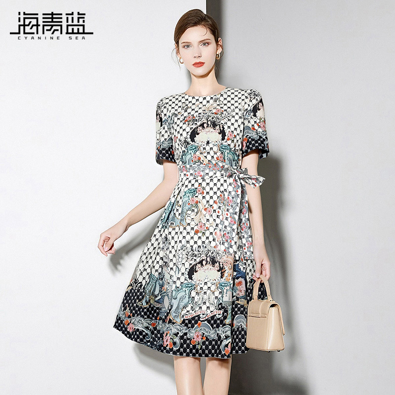 新款 CB女装 气质印花超长连衣裙显瘦显身材超好看Seren House