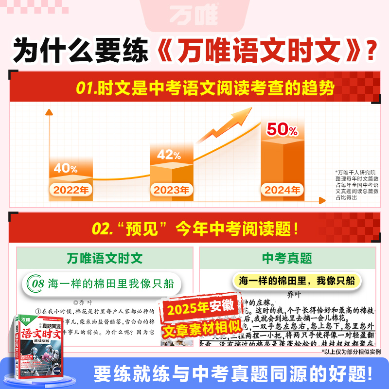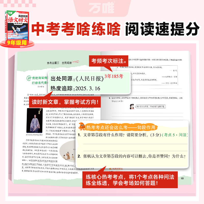 当当网正版 2026万唯中考时文阅读初中语文阅读七八九年级同步练习册专项训练初一初二初三语文阅读理解答题技巧现代文阅读训练
