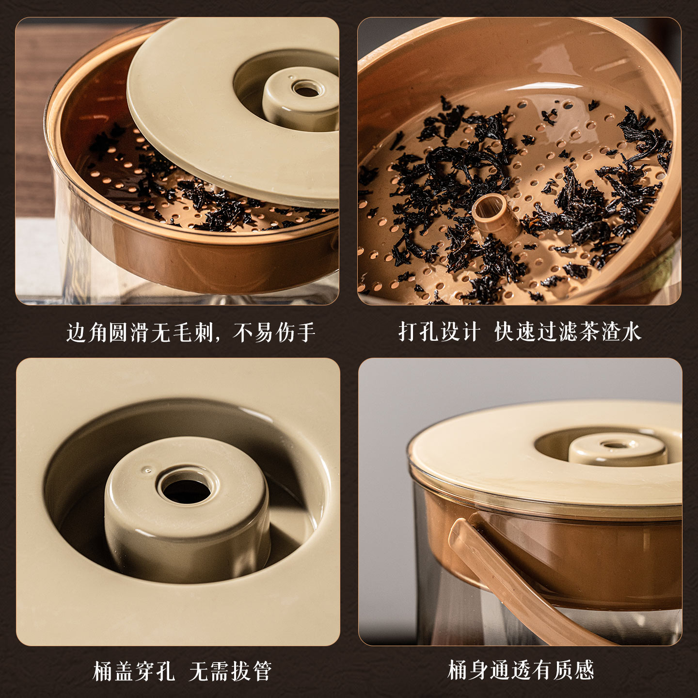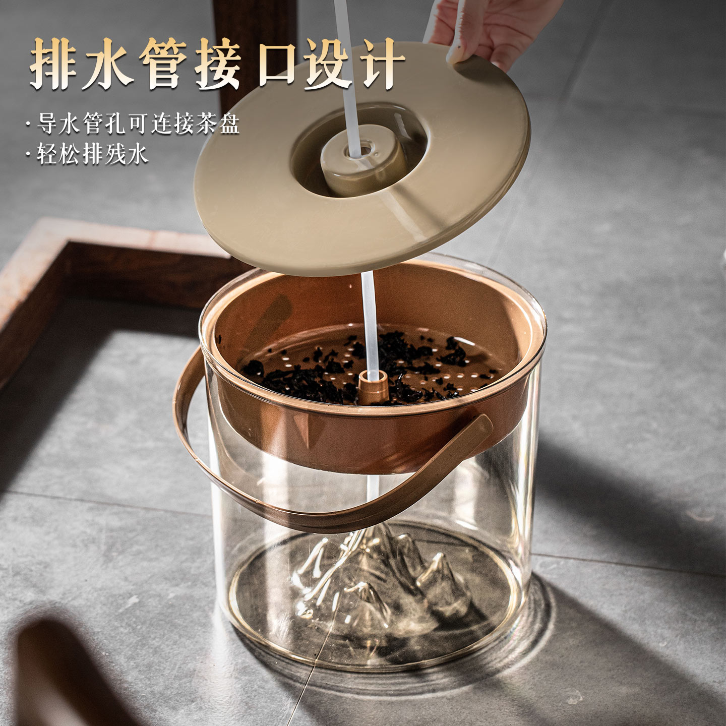 透明茶水桶废水桶茶台茶渣桶带盖茶具配件茶叶过滤大容量茶道茶桶