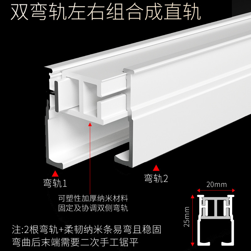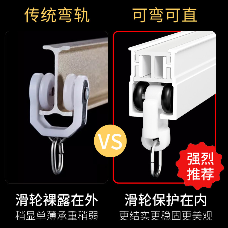 可弯曲窗帘轨道静音l型滑轮弯轨飘窗u侧装 一体弧形导轨铝合金滑轨