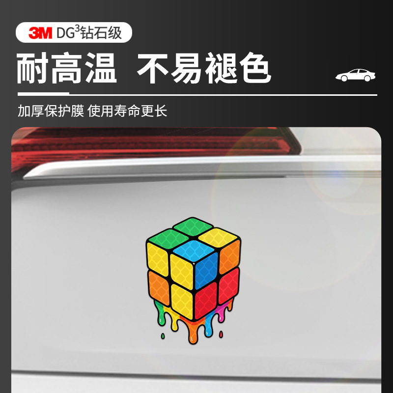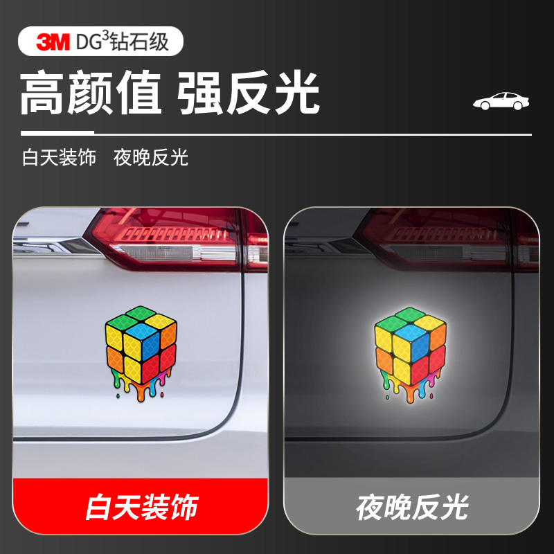 3M原创个性 饰防水反光车贴 汽车贴纸涂鸦魔方电动车摩托车头盔装