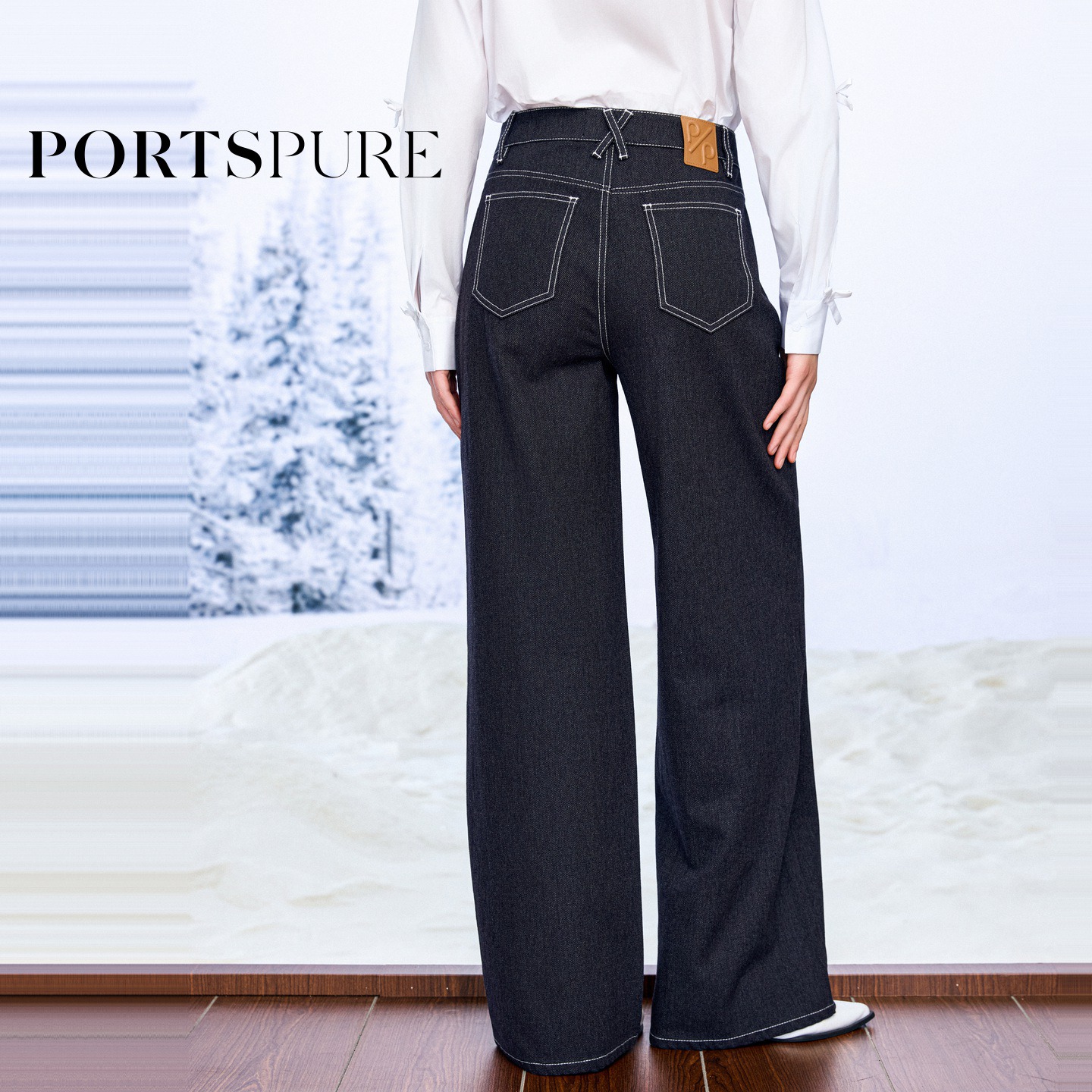 解构波浪分割丹宁牛仔裤 2025早秋新品 宝姿PORTSPURE女装 商场同款