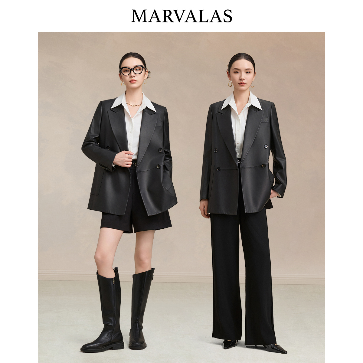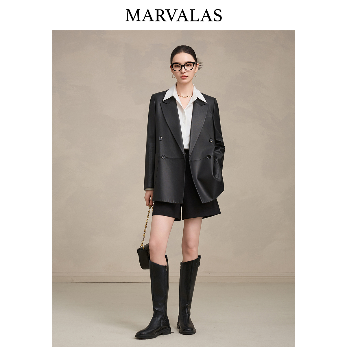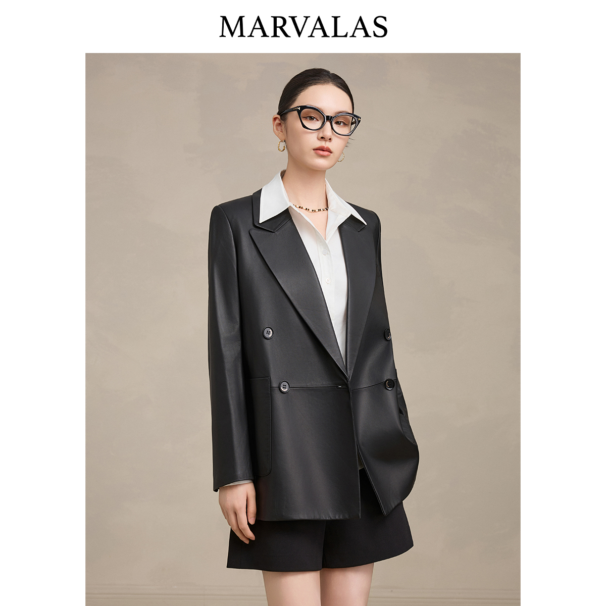 经典 曼德诗绵羊皮西装 时尚 新款 百搭纯色气质干练皮衣外套 2025秋季