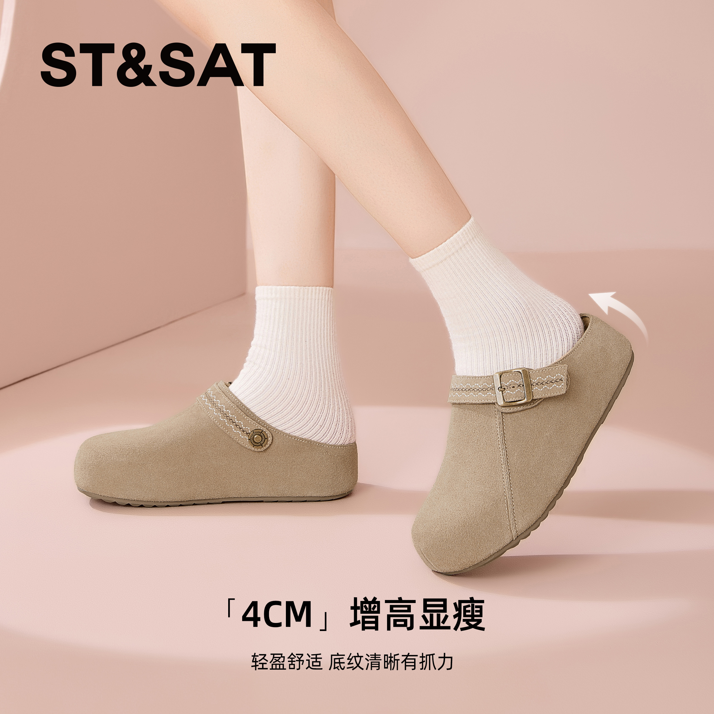 一脚蹬懒人拖鞋 春秋内增高包头半拖鞋 女2025新款 星期六厚底勃肯鞋