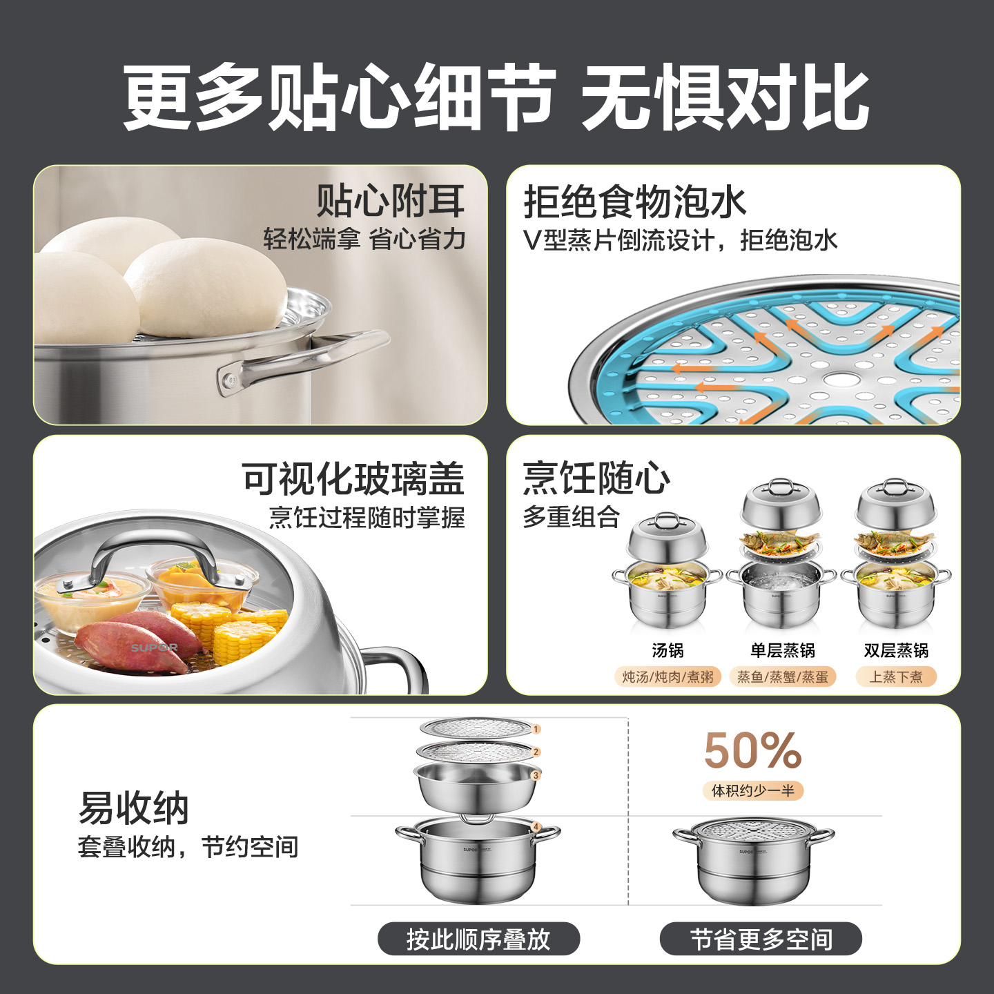 苏泊尔不锈钢蒸饭桶大蒸笼蒸米桶带盖商用蒸屉无底蒸锅蒸酒桶蒸桶
