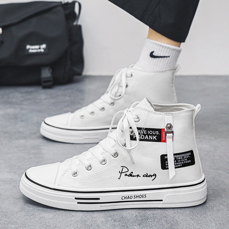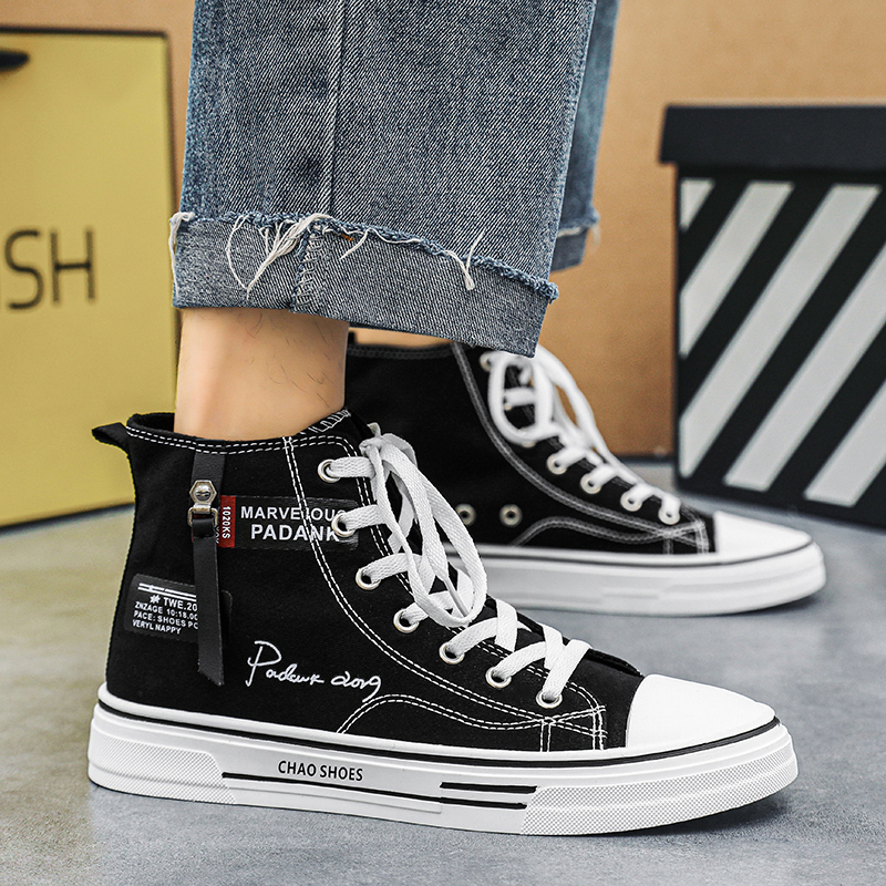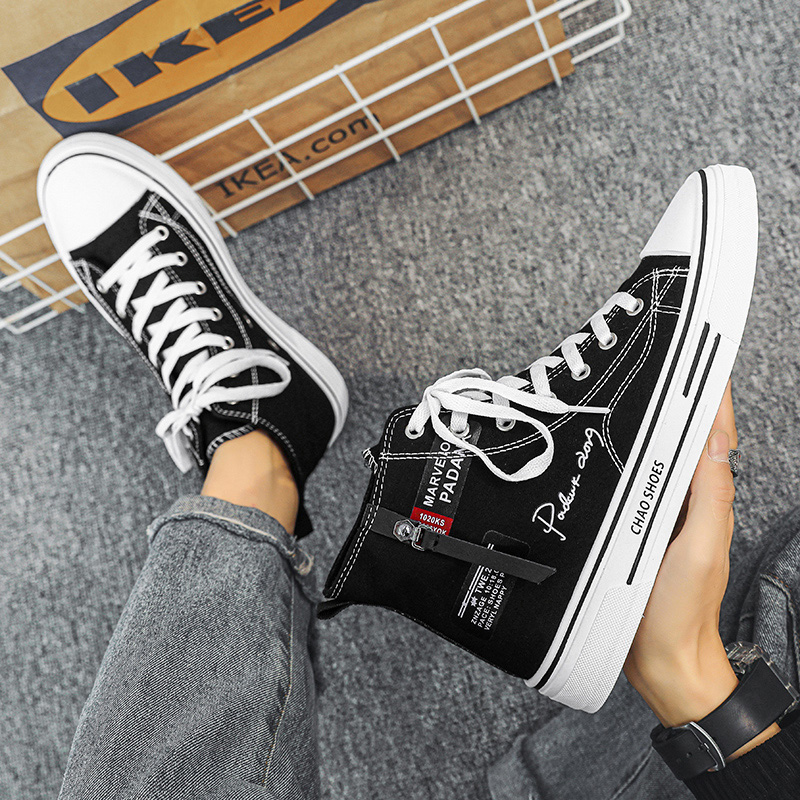 2025新款 布鞋 秋季 运动休闲黑色经典 透气潮流百搭高帮板鞋 帆布男鞋