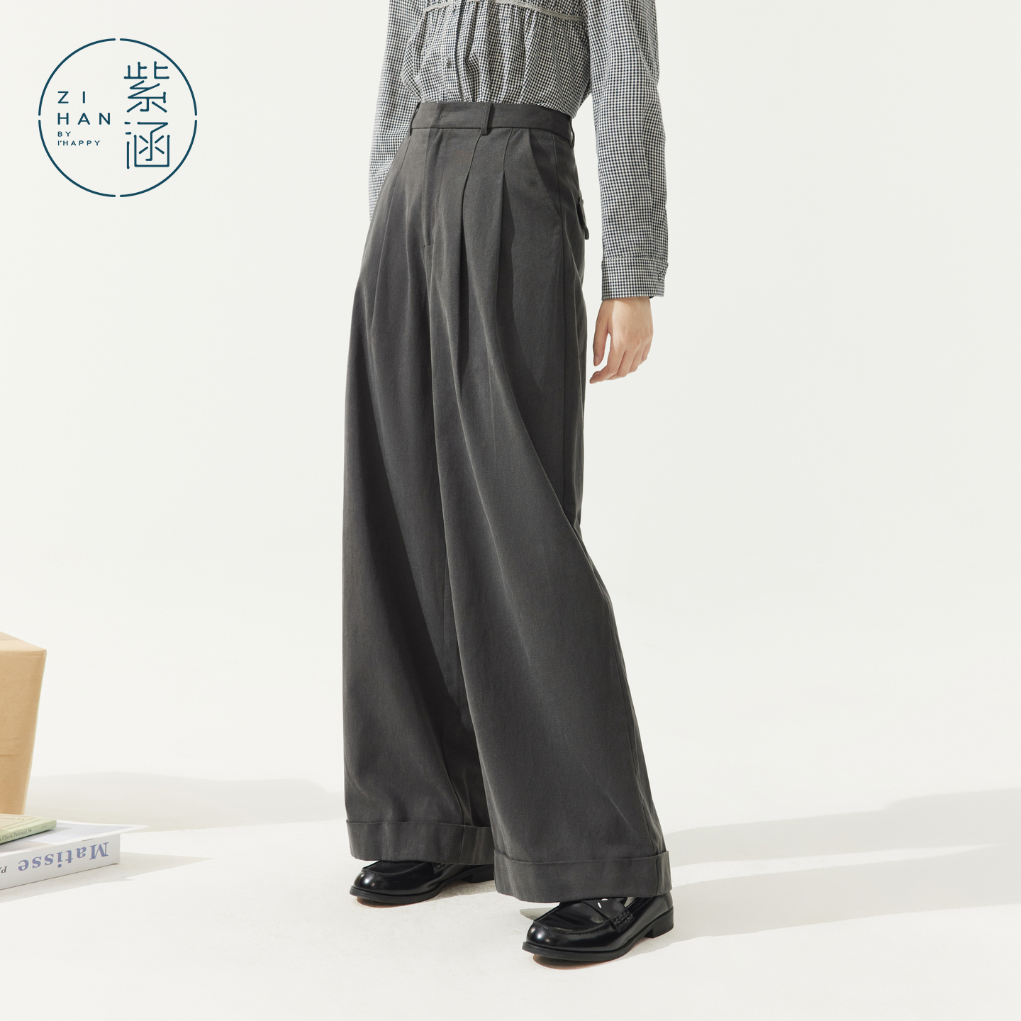 女春秋新款 休闲直筒慵懒松弛感裤 高腰垂感窄版 裤 子 西装 黑色阔腿裤