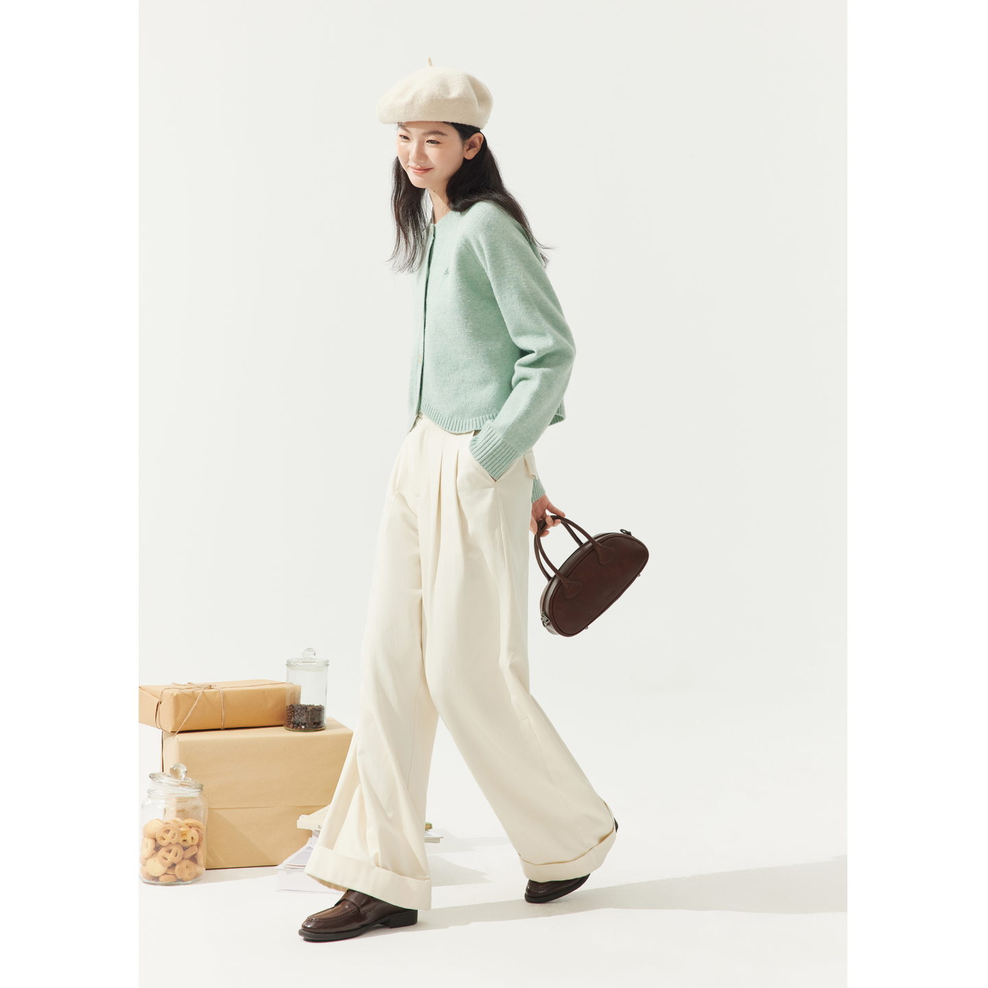高腰垂感窄版 新款 羊毛西装 裤 卡其色阔腿裤 休闲直筒裤 女2025春秋季