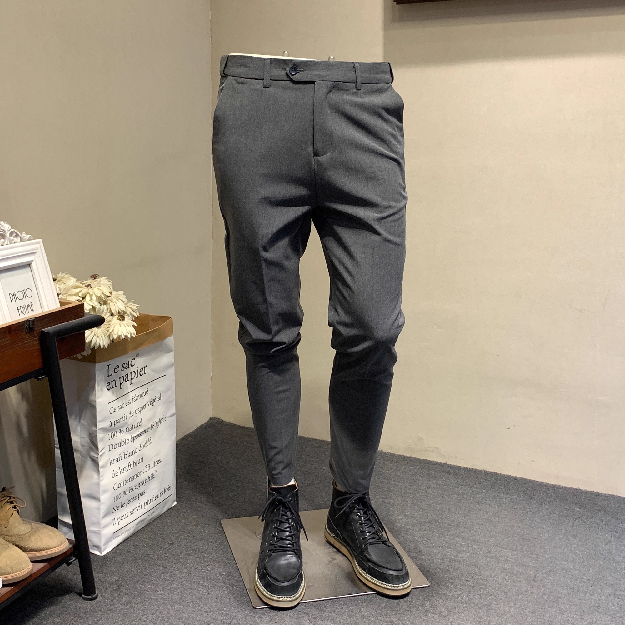 男西装 抗皱垂顺修身 裤 九分商务休闲黑色高级灰长裤 子男 男士 西裤