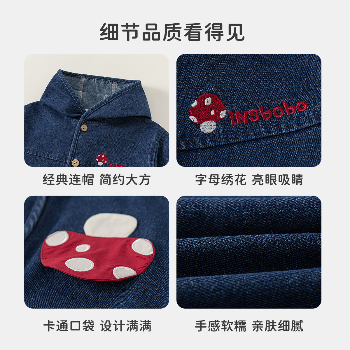 潮 宝宝洋气春秋装 INSbobo女童牛仔外套秋季 女宝连帽上衣2025新款