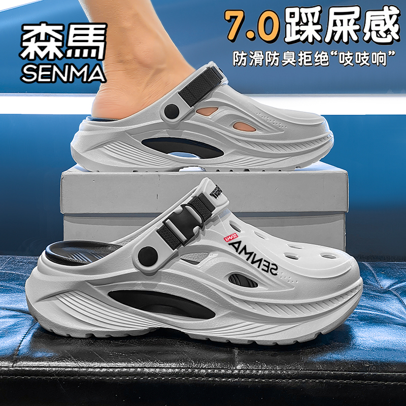 男夏季 沙滩凉鞋 外穿防滑包头拖鞋 运动开车两用大码 男士 森马洞洞鞋