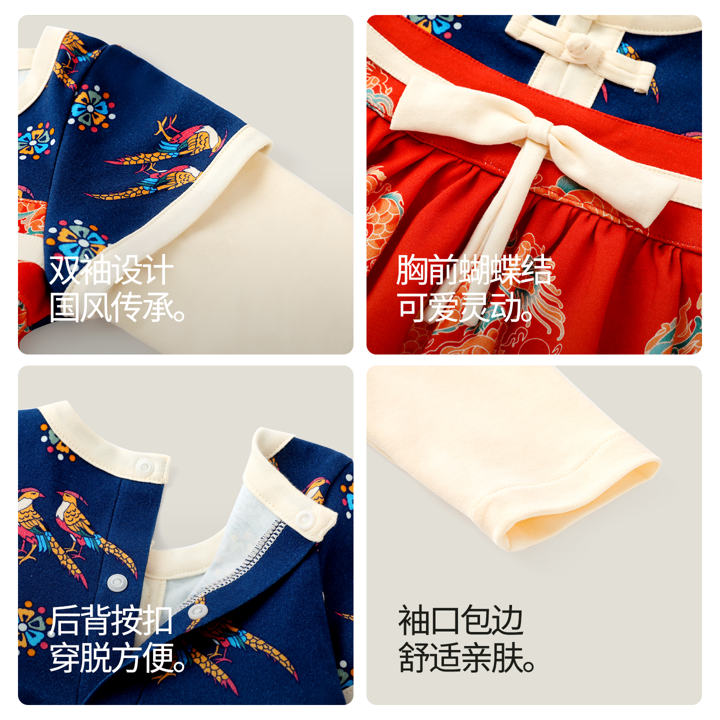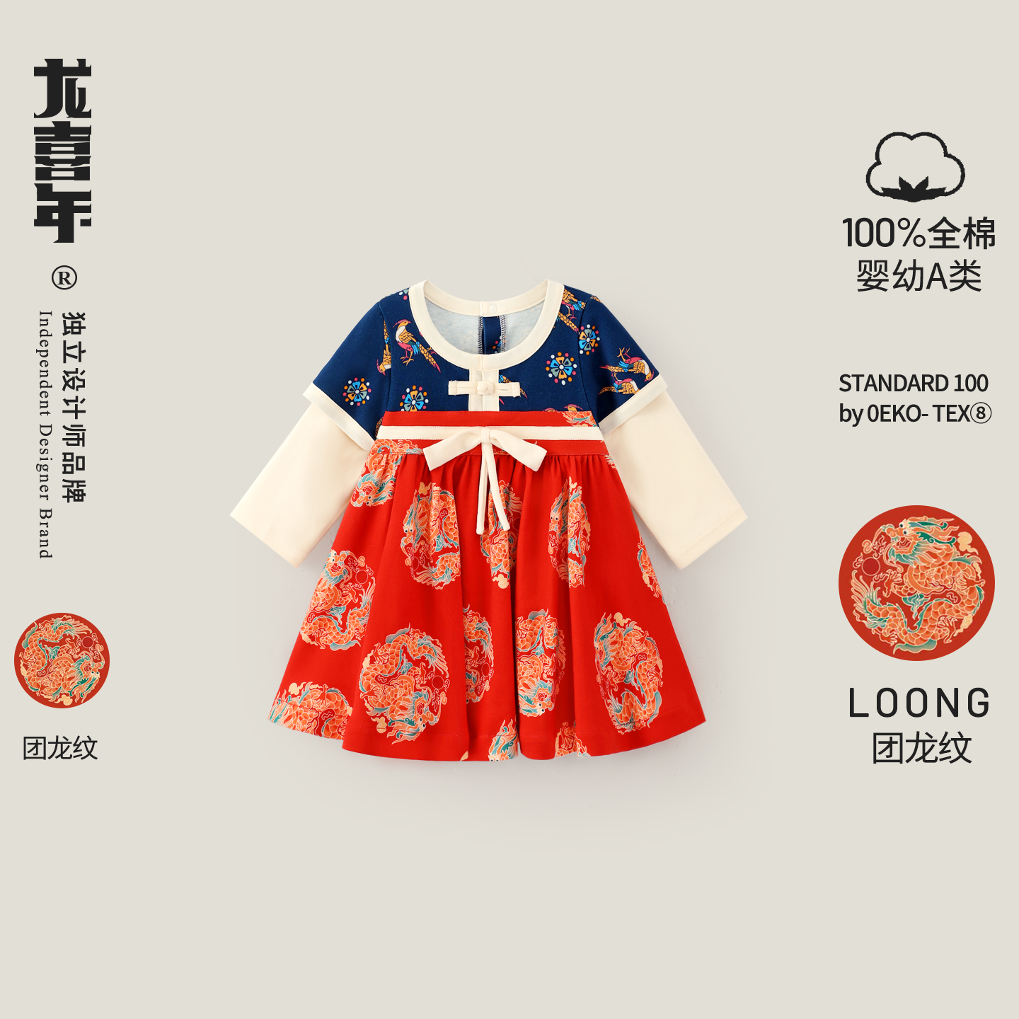 龙喜年周岁女宝宝礼服纯棉红百天百岁宴中式 裙子春秋衣服 国风唐装