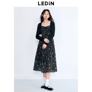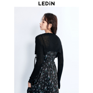 断码 女装 清仓 黑色吊带裙配针织开衫 外搭温柔毛衣外套 乐町新品