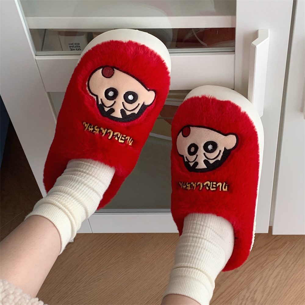 男女冬季 室内防滑保暖毛绒月子鞋 蜡笔小新情侣棉拖鞋 细细条正版