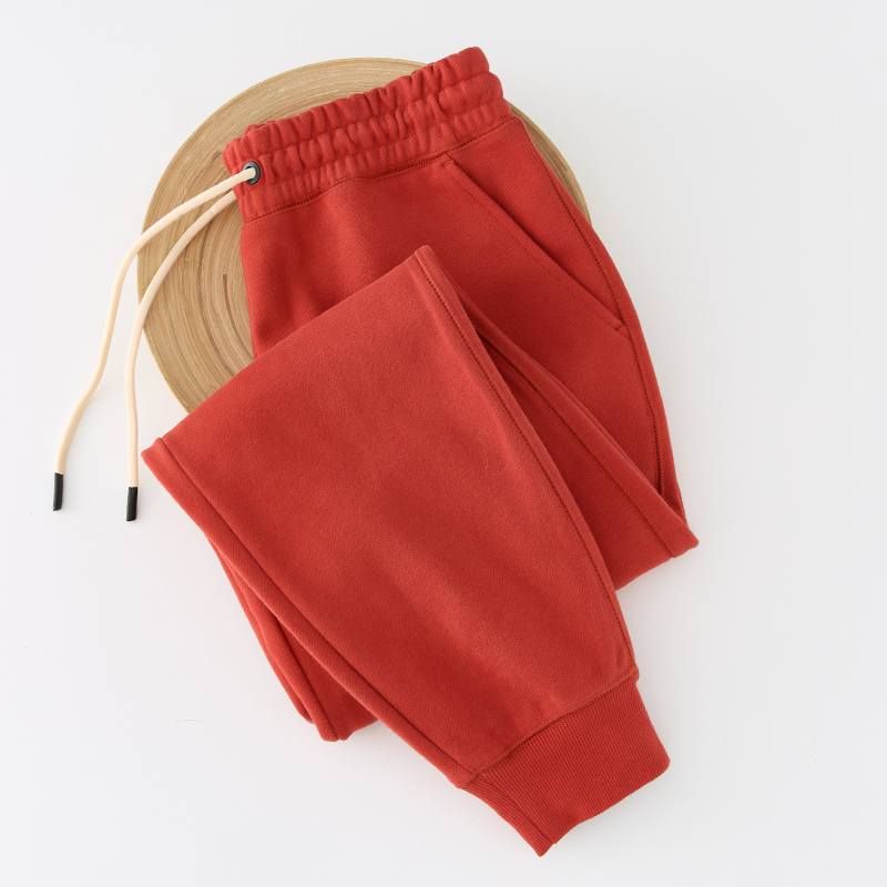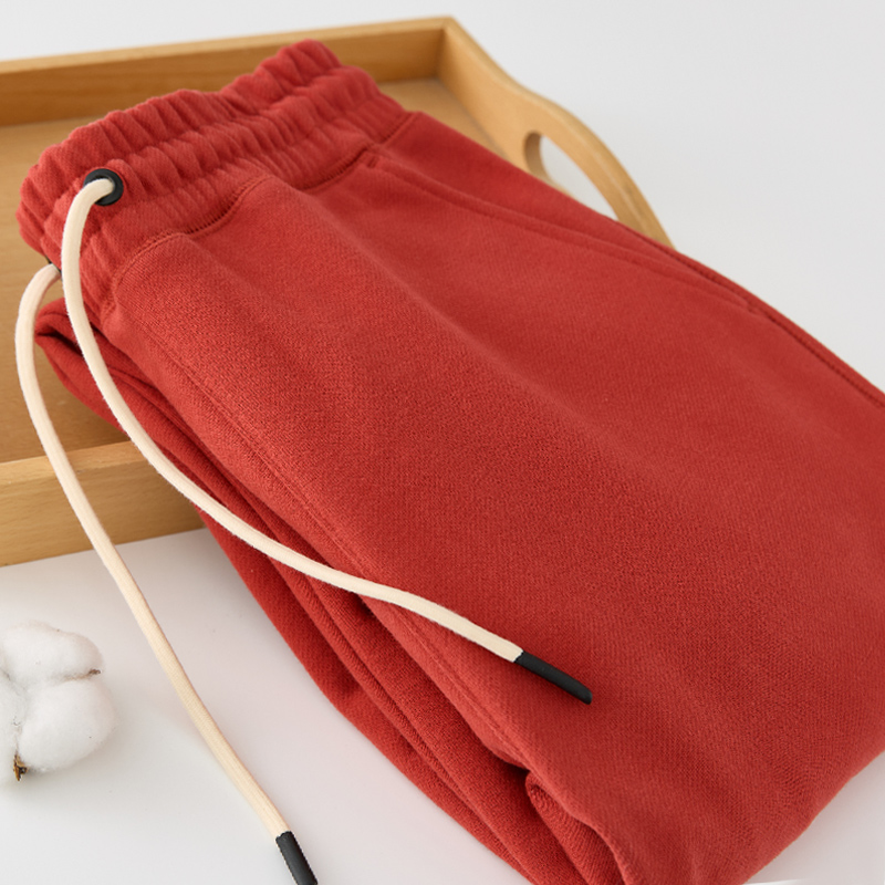 女抽绳束脚裤 纯棉休闲运动长裤 子 女秋冬哈伦裤 470G重磅复古红卫裤
