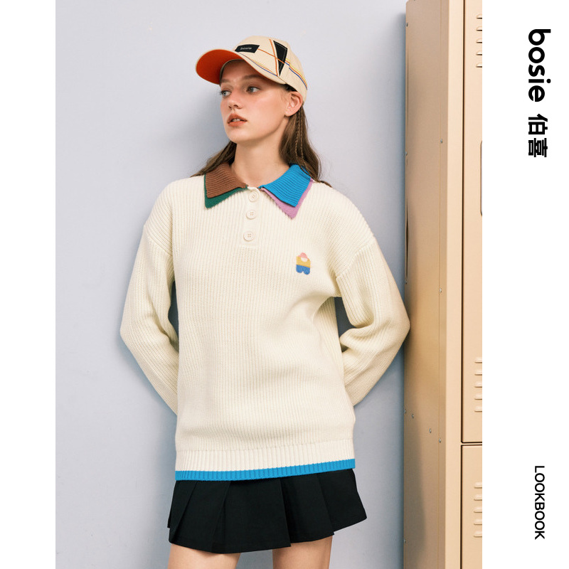 羊毛针织开衫 百家好2025秋新款 女连帽假两件毛衣外套 House Basic