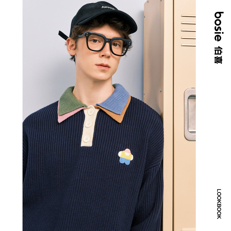 修身 百搭纯色拉链开衫 爆款 秋冬季 毛衣外套男立领半高外搭 男针织衫