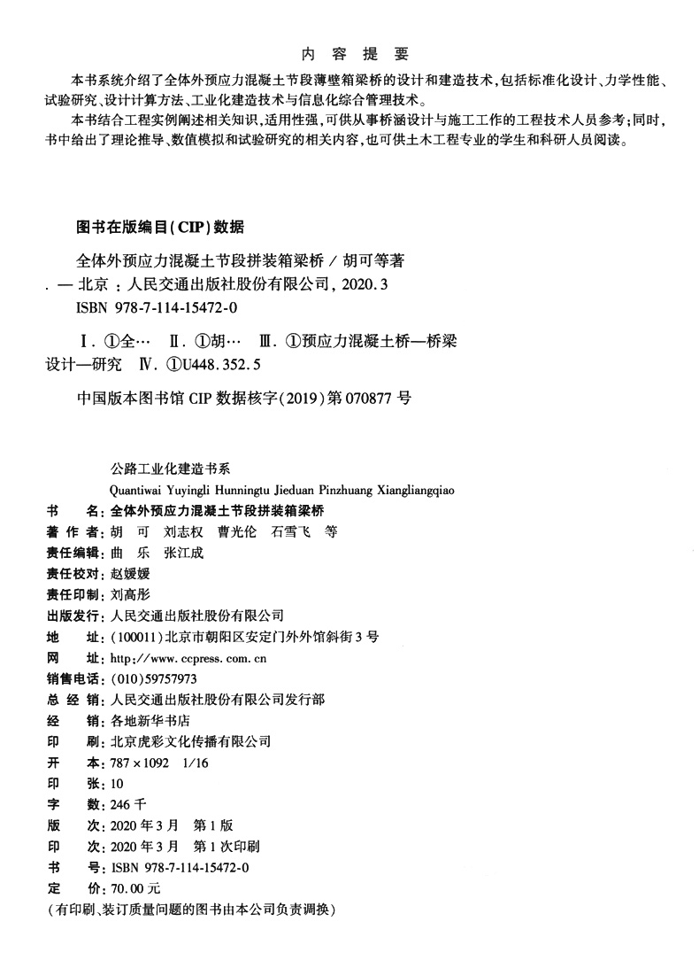 胡可等人民交通出版 正版 箱梁桥 全体外预应力混凝土节段拼装 社9787114154720 书籍