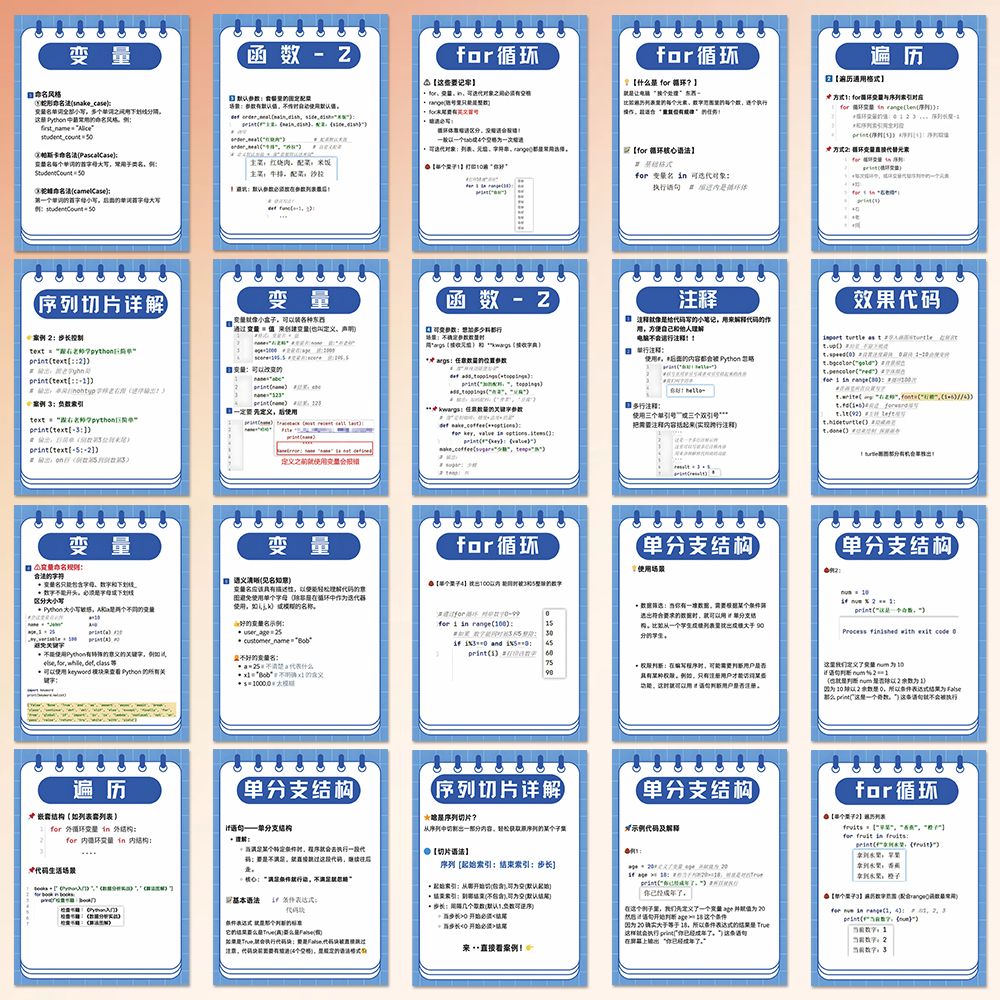 96张python基础练习贴纸常用内置函数编程自学程序员专用装 饰贴画