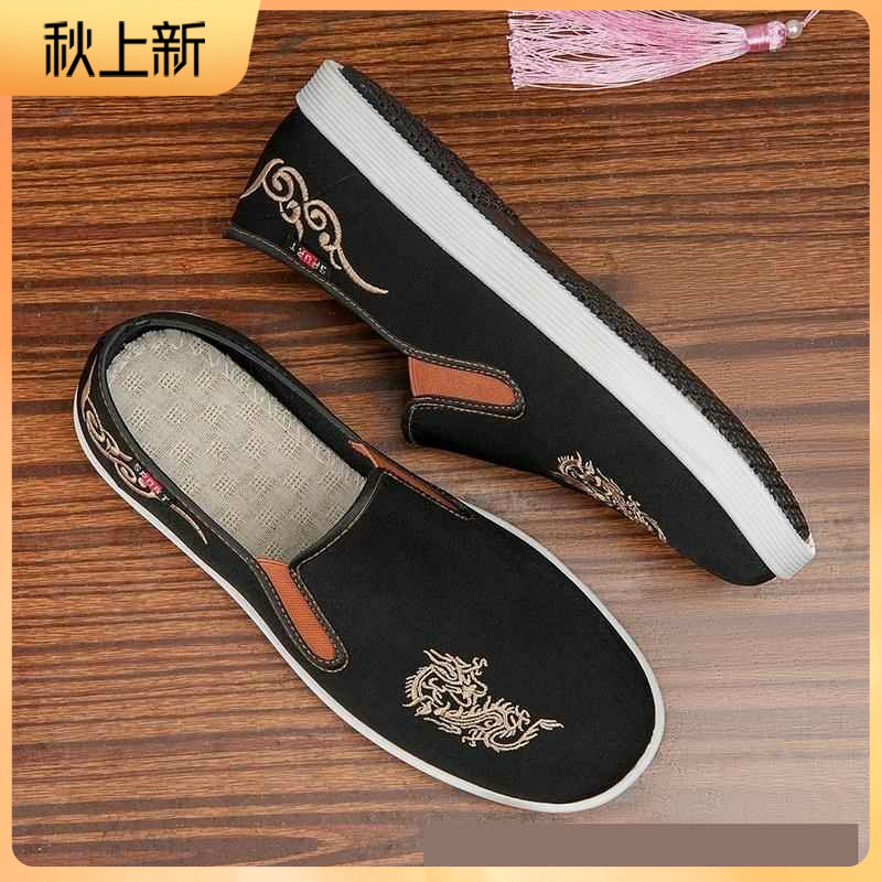 春秋纯手工千层底中老年一脚蹬休闲透气养脚黑布鞋 老北京布鞋 男款