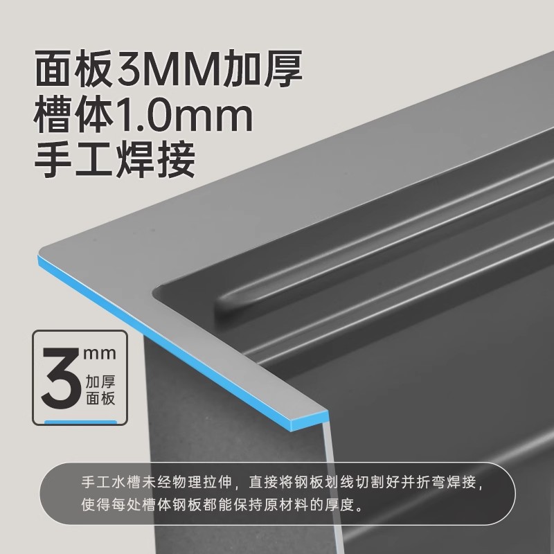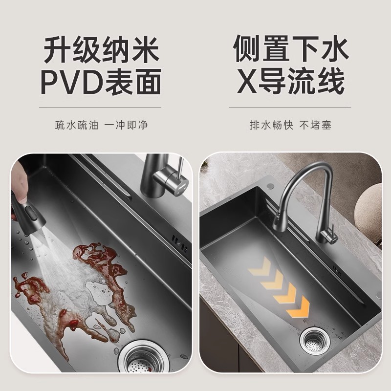 欧琳厨房水槽大单槽手工304不锈钢纳米洗菜盆家用加厚阶梯洗碗槽