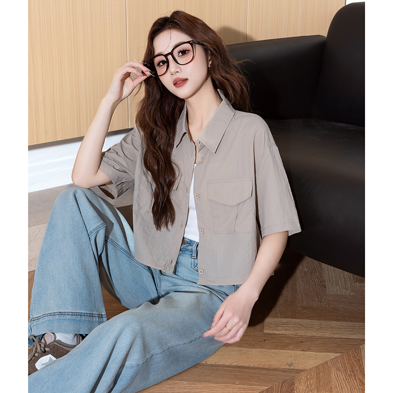 女短袖 复古休闲衬衣百搭超好看爆款 衬衫 工装 短款 唐狮2025夏新款