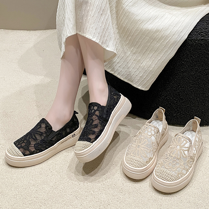 女2025新款 上班单鞋 夏季 网面亚麻渔夫鞋 厚底 爆款 踩屎感老北京布鞋