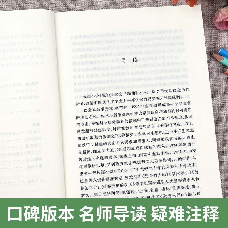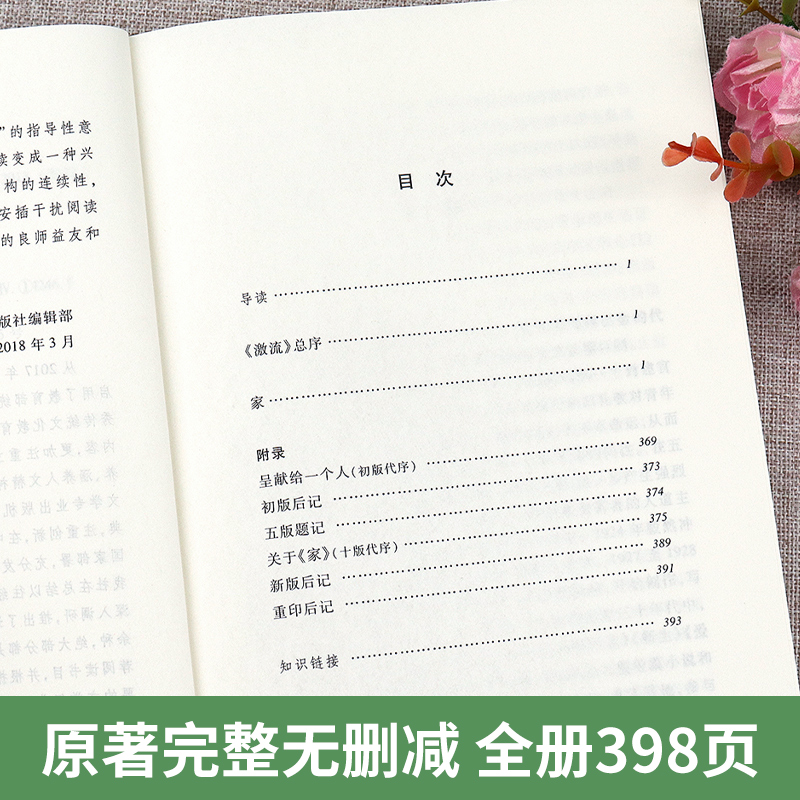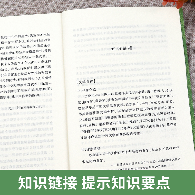 现货无删减 巴金著 人民文学出版 社书籍中学生版 名著高中课本教材 正版 语文阅读丛书青少年课外阅读经典 家