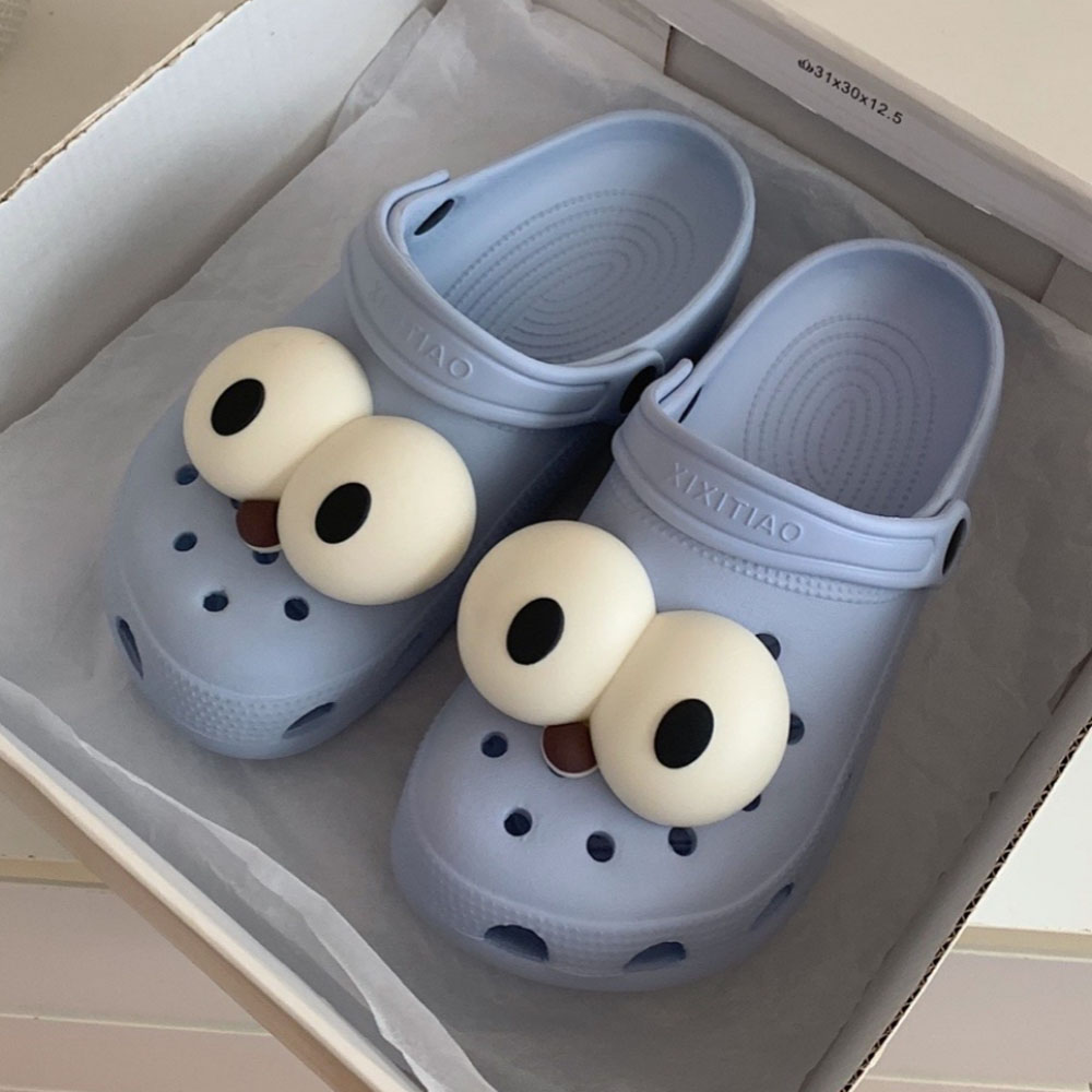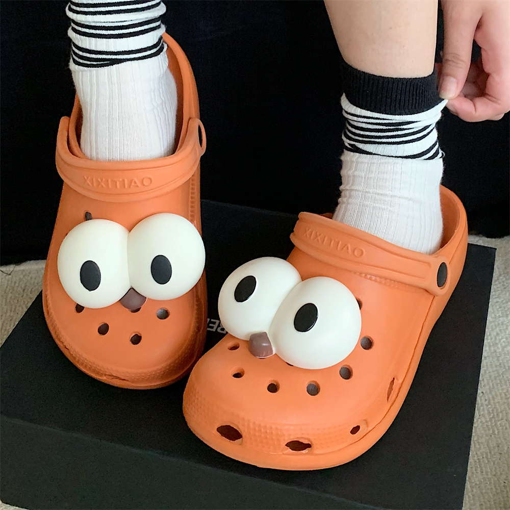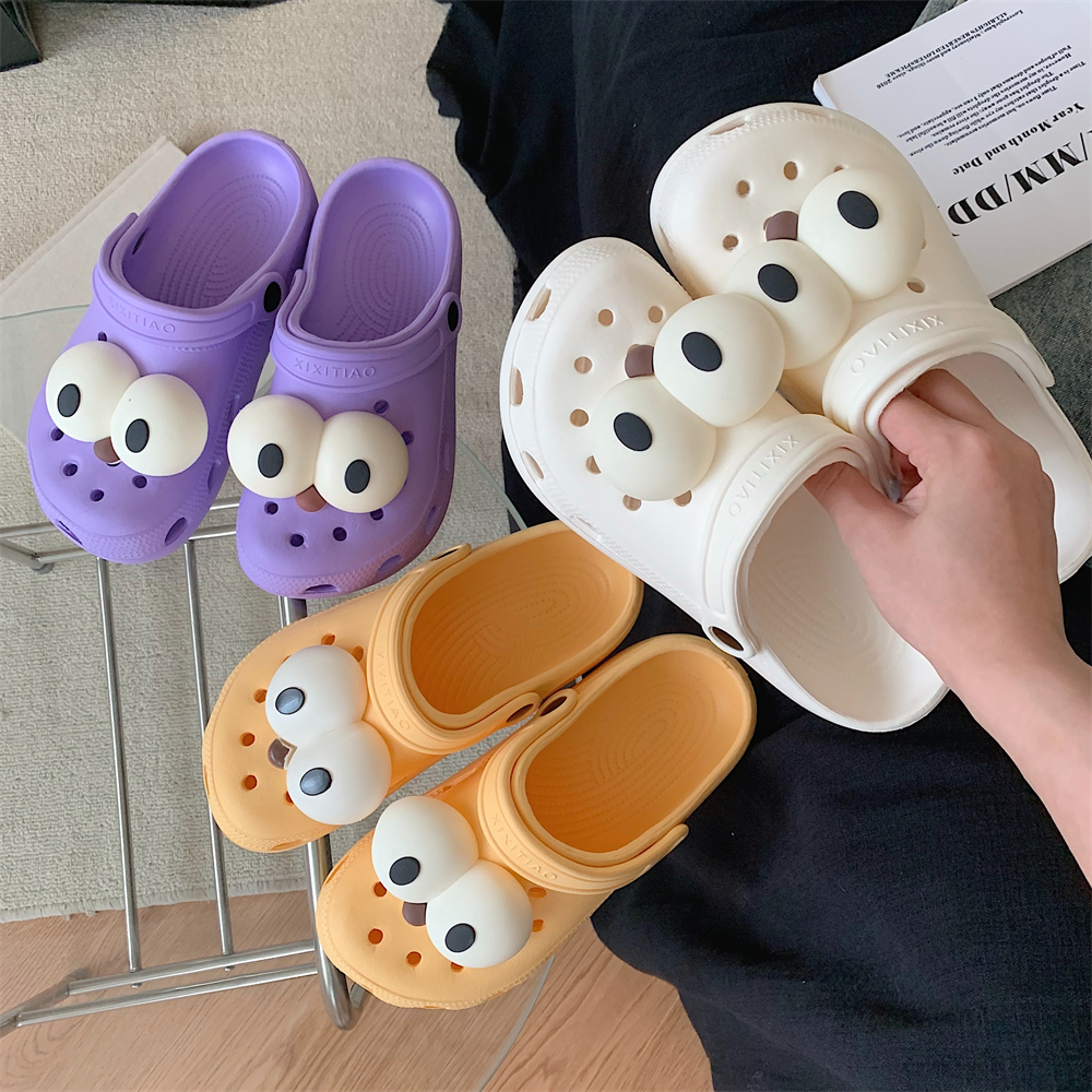 趣味大眼睛男女可爱凉拖 情侣夏季 细细条 休闲防滑两穿包头洞洞鞋