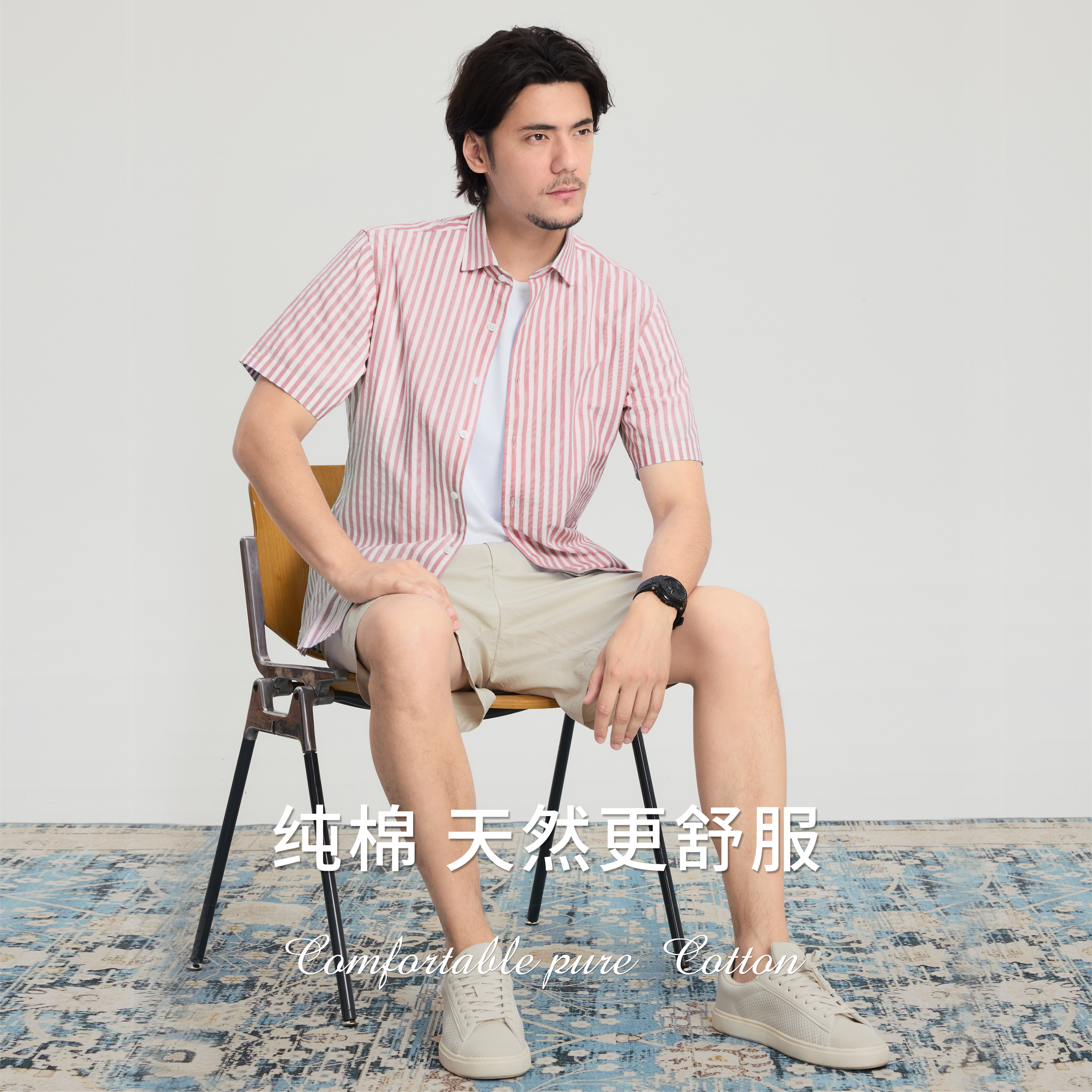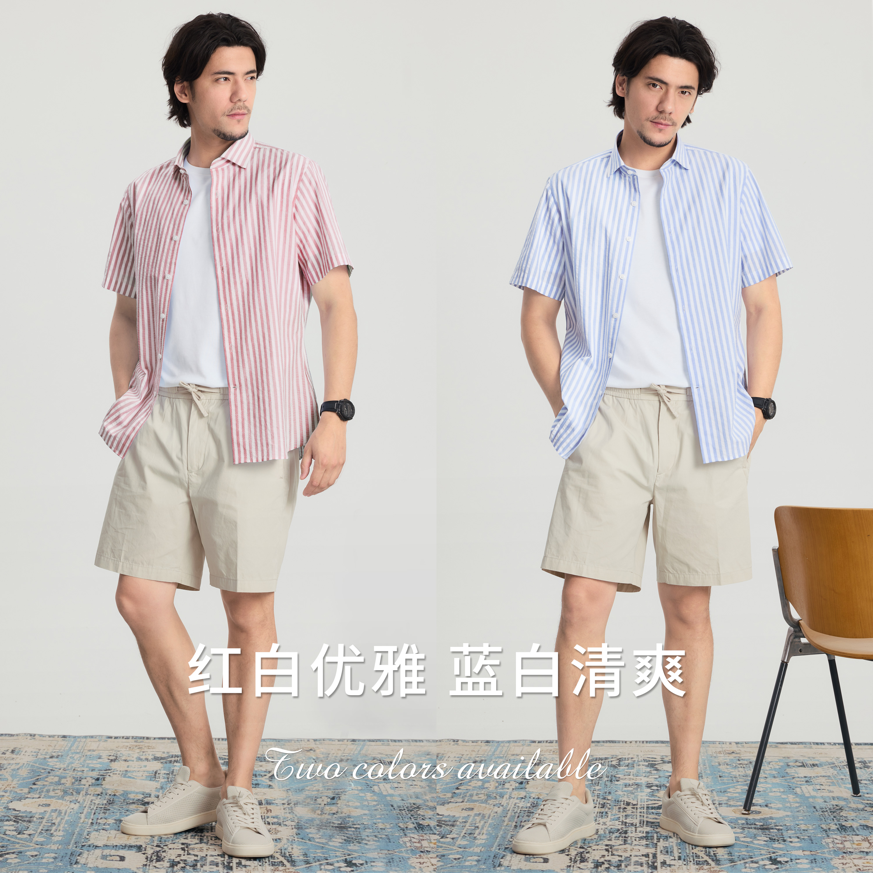 春夏休闲透气上衣男 白色衬衫 HLA 海澜之家山不在高纯棉牛津纺短袖
