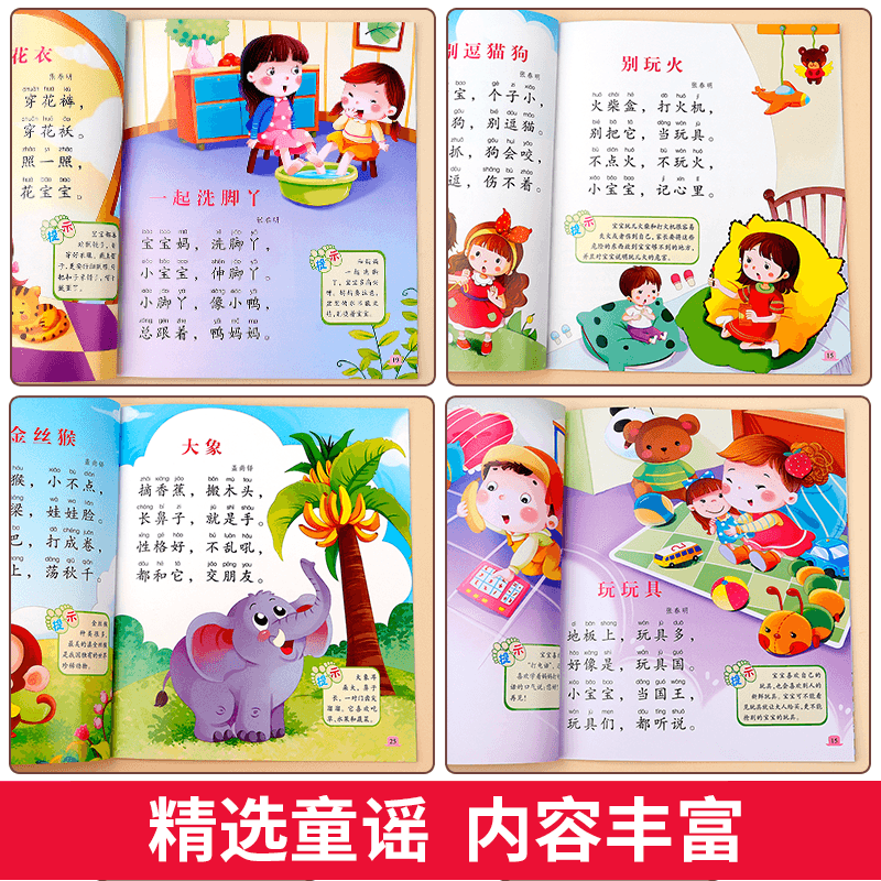 幼儿园歌谣口才训练语言绘本一年级阅读课外书必读带拼音识字书认字 6三岁宝宝书籍注音版 三字童谣念儿歌300首幼儿做早教启蒙书0