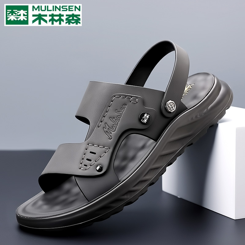 男潮夏季 户外穿休闲沙滩鞋 2025新款 真皮凉拖鞋 休闲时尚 木林森凉鞋