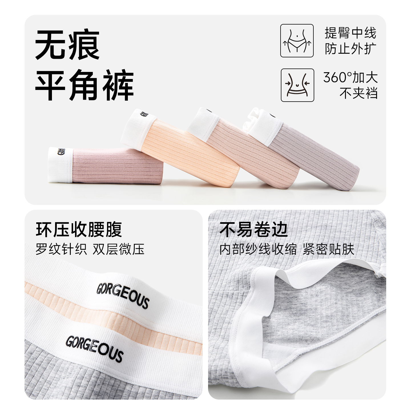 大码 纯棉平角内裤 无痕安全裤 防走光四角裤 透气 女士中腰全棉女内裤