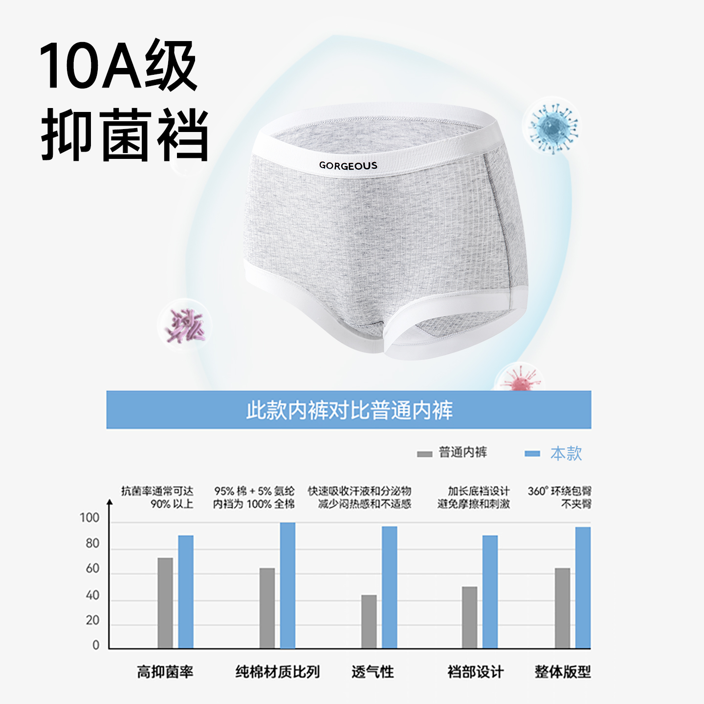 内裤 有棵树女士内裤 纯棉加长裆10A抗菌透气高腰花纱平角2025新款