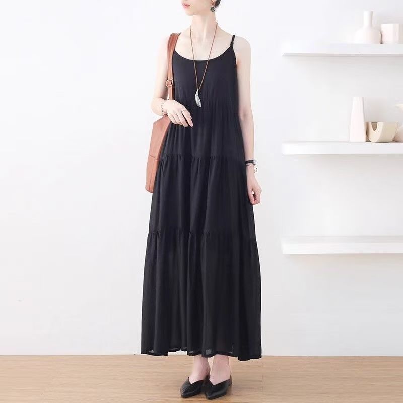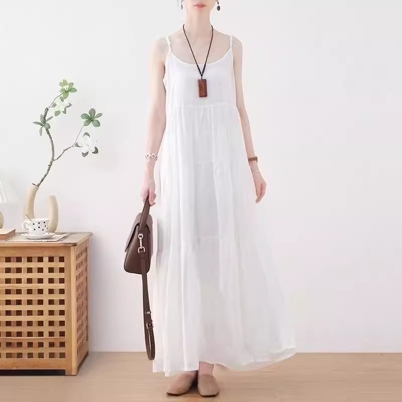 女人造棉外穿时尚 棉绸连衣裙宽松大码 洋气度假长裙子 新款 2025夏季