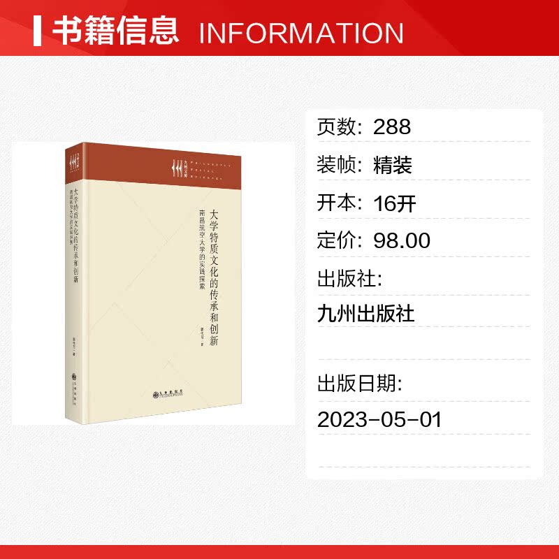 育儿其他文教 社 南昌航空大学 九州出版 图书籍 新华书店正版 著 郭代习 实践探索 传承和创新 大学特质文化