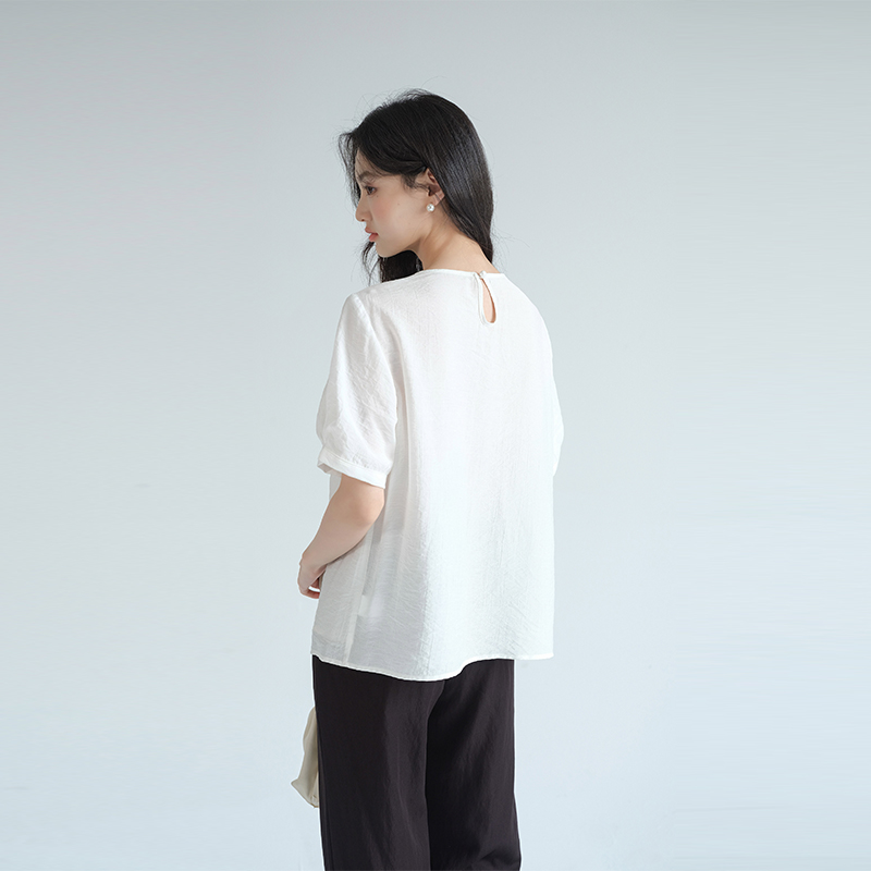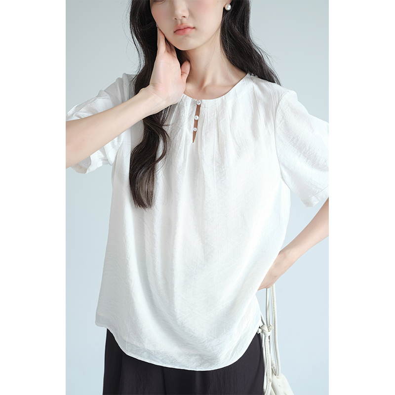 别致镂空珍珠领衬衫 法式 蓝若水大码 新款 简约气质上衣 2025夏装